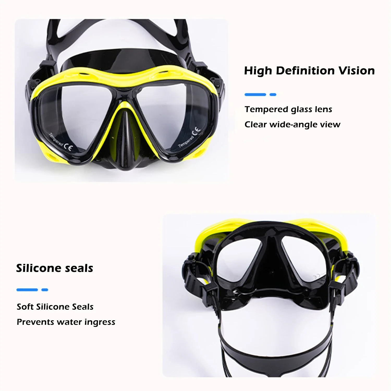 Professional Seal Tempered Glass Goggles Diving Scuba Mask Adult HD Large Frame Fashion Silicone Swimming Equipment Men Women