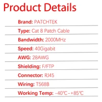 Patchtek Cat8 Lan 40G RJ45 Ethernet Cable Networking 0.2M-20M SSTP 28AWG Twisted pairs 2000Mhz Internet Lan Cord for Laptops PS