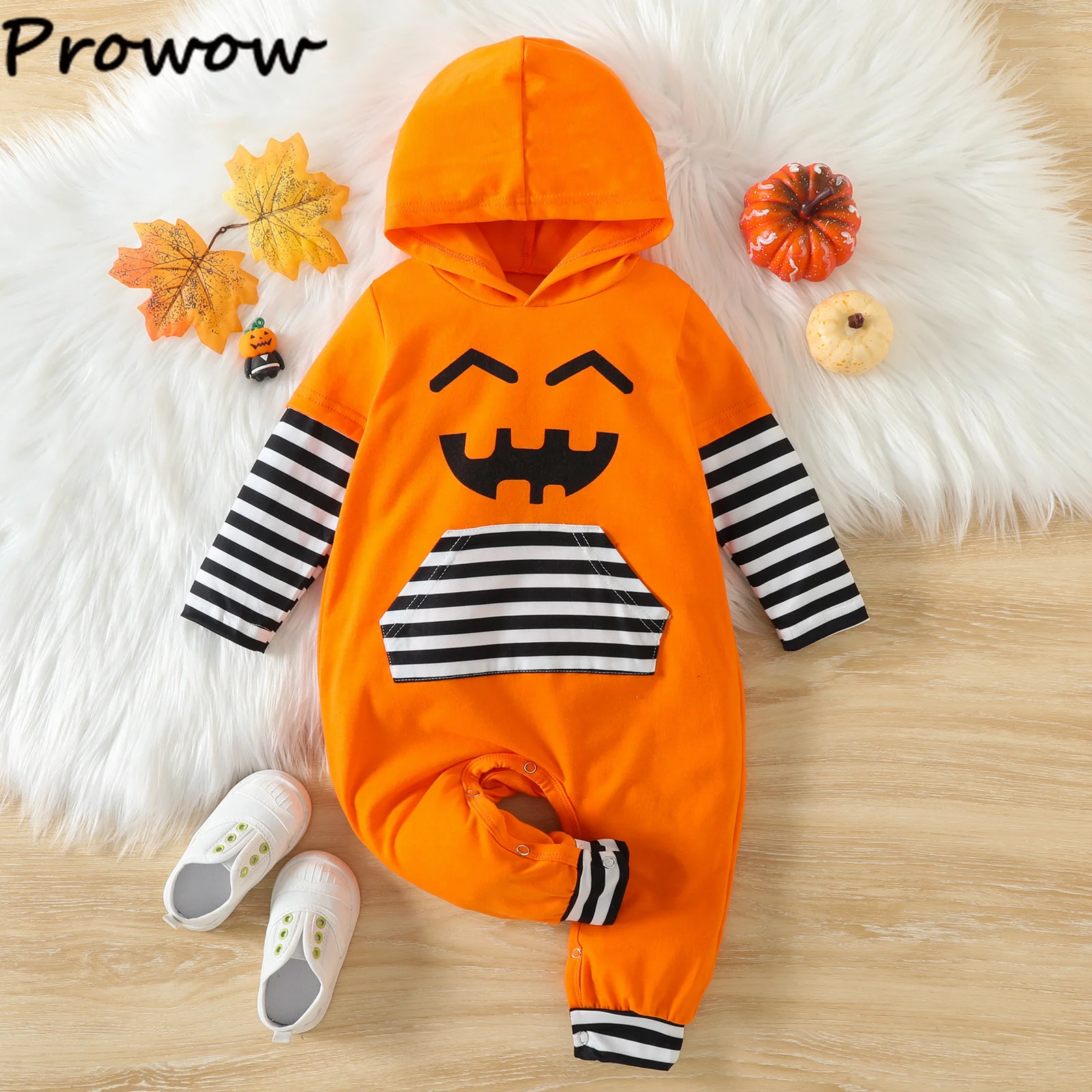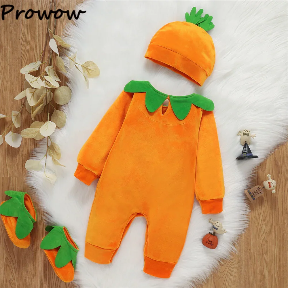Prowow 0-24M My First Halloween Baby Costumes Orange Fleece Pumpkin Romper+Pumpkin Hat+Shoes 3pcs Baby