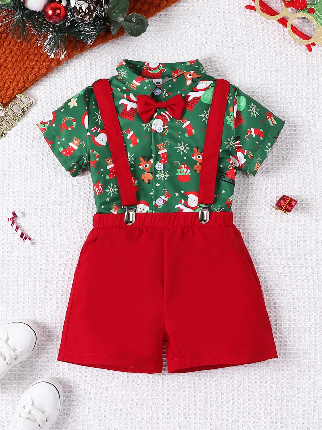 Prowow Baby Christmas Outfit Sets For Kids Necktie Xmas Shirts+Red Overalls Children New Year Costume Boys Christmas Clothes