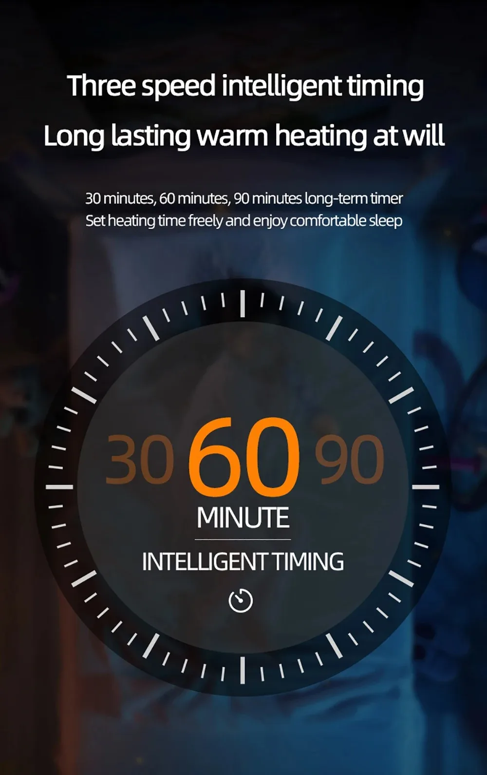 Temperature & Timer Settings – Two heat levels (500W/1200W) and 3 timing options (30/60/90 mins, remote only).