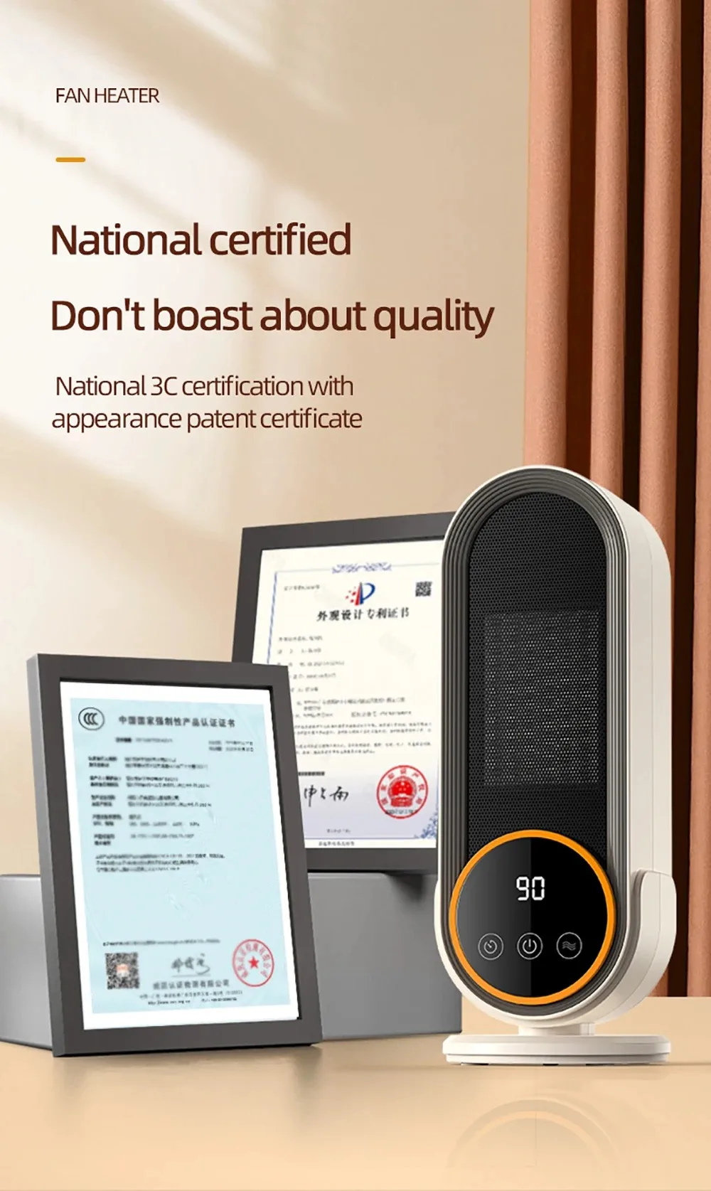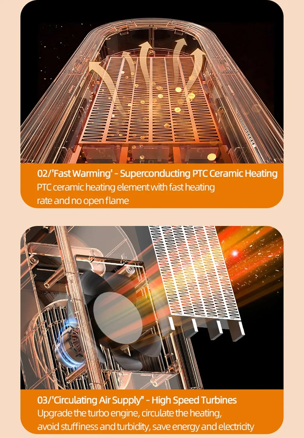 Fast Heating with PTC Ceramic – 1200W ceramic heating for instant warmth, no waiting in cold winter.