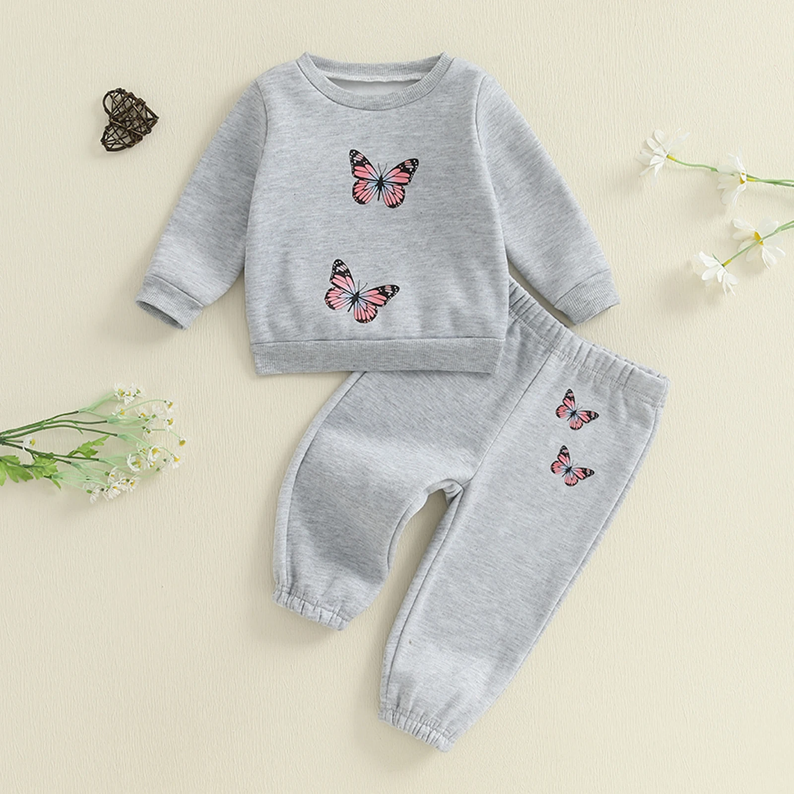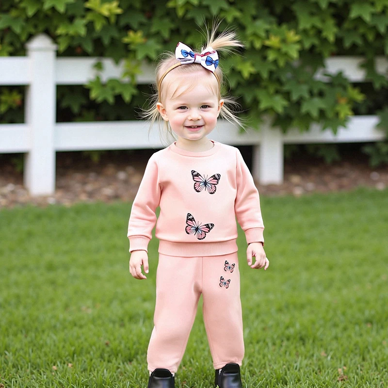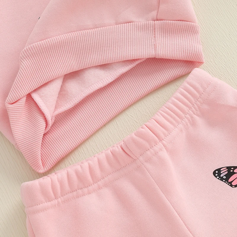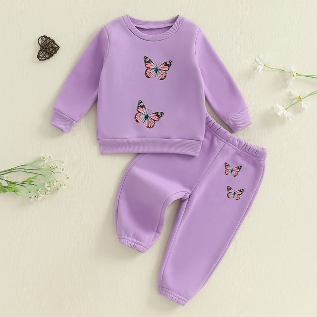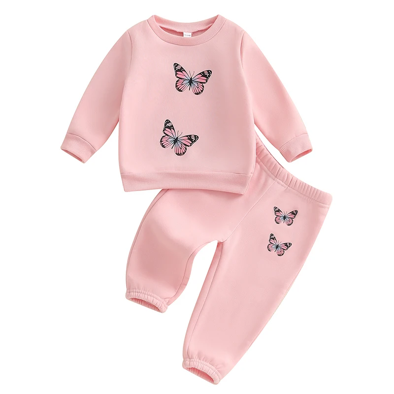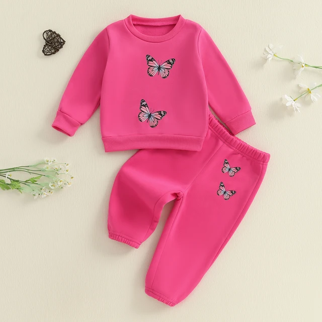 Baby Girl 2Pcs Fall Outfits Long Sleeve Butterfly Print Sweatshirt + Pants + Headband Set Toddler Clothes