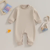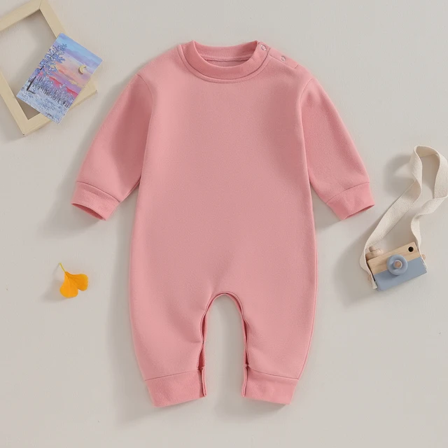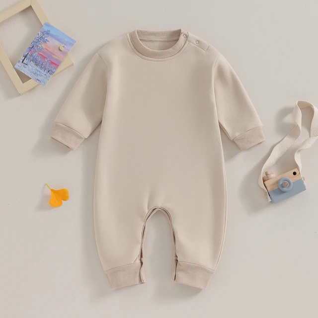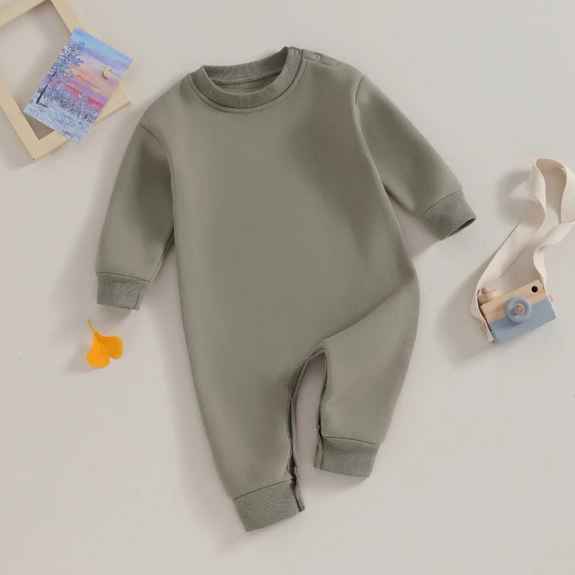Toddler Baby Sweatshirt Romper Solid Color Fleece Long Sleeve Jumpsuit for Newborn Cute Clothes