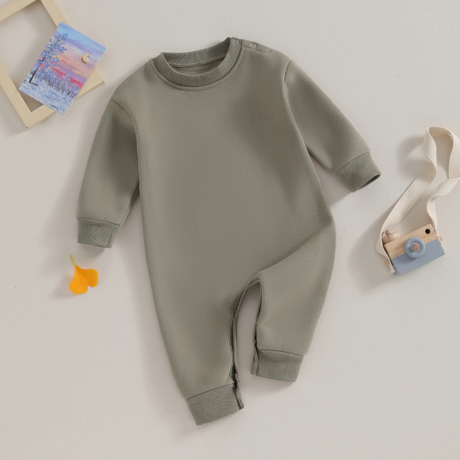The baby sweatshirt romper in solid color, long sleeves, round neck, fleece lining, unisex design, cute and comfortable, your little one will receive lots of compliments when wearing it.