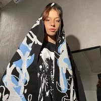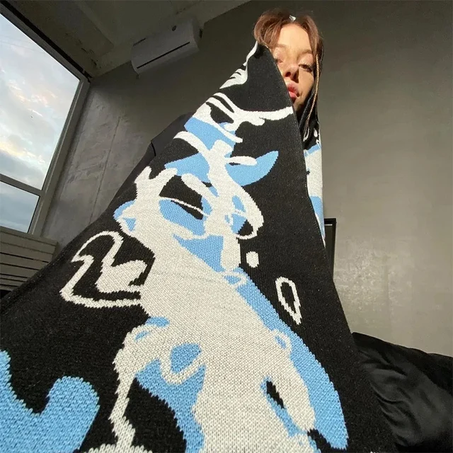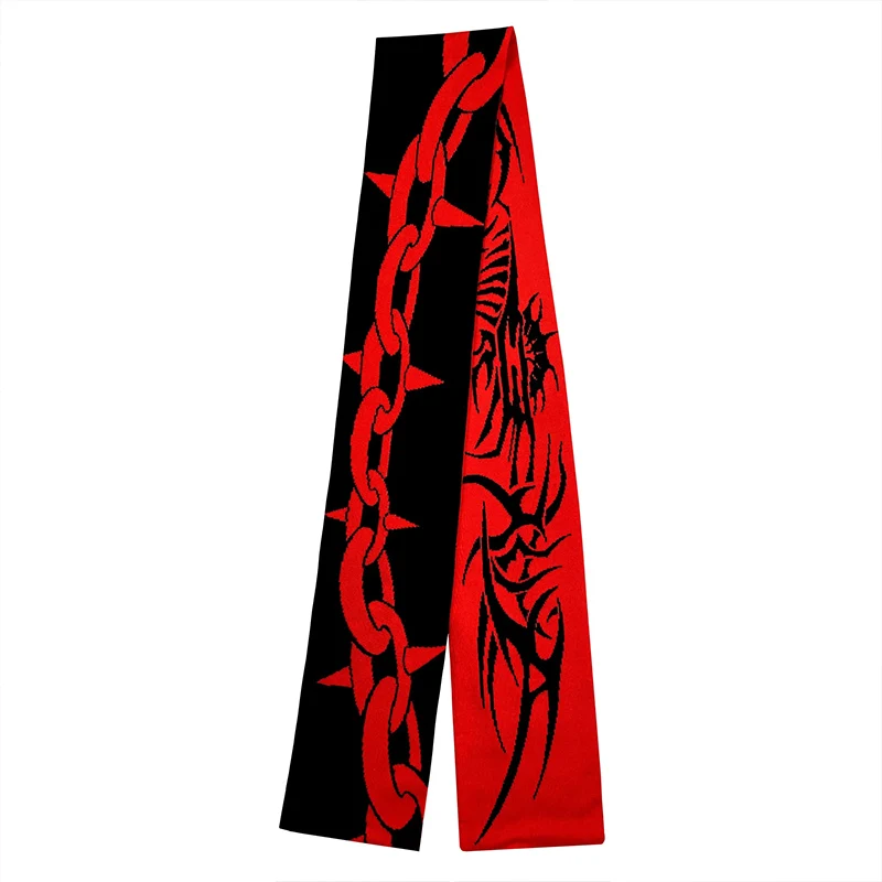 Punk fashion creative striped knitted men and women winter anime scarf niche black tassel party packaging