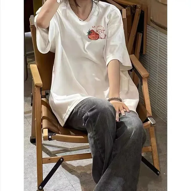 With its Korean-style round neck and short sleeves, this T-shirt is a versatile piece that can be dressed up or down.