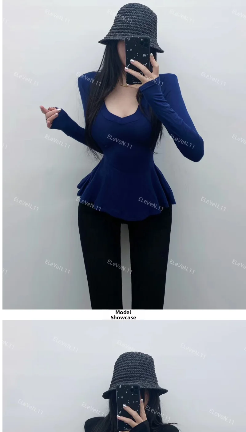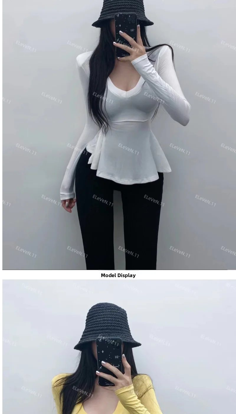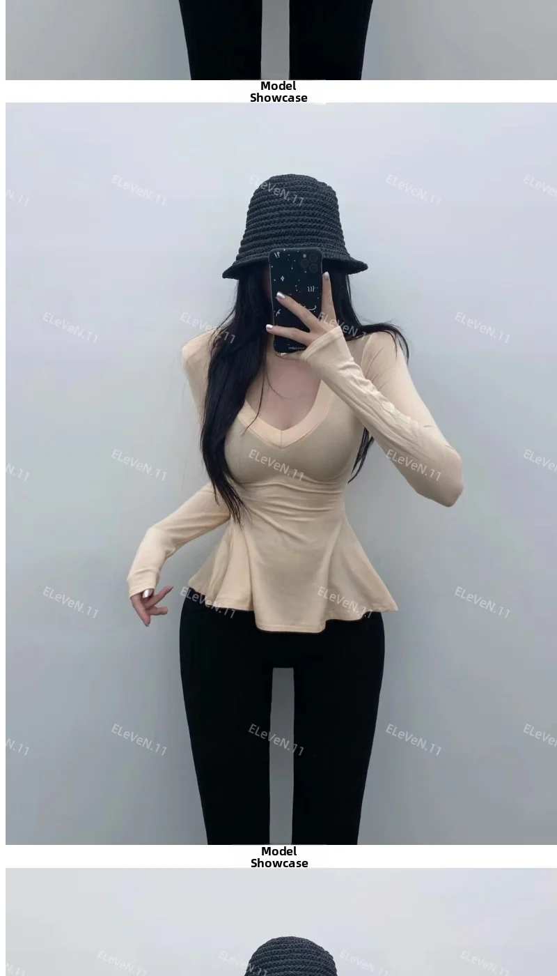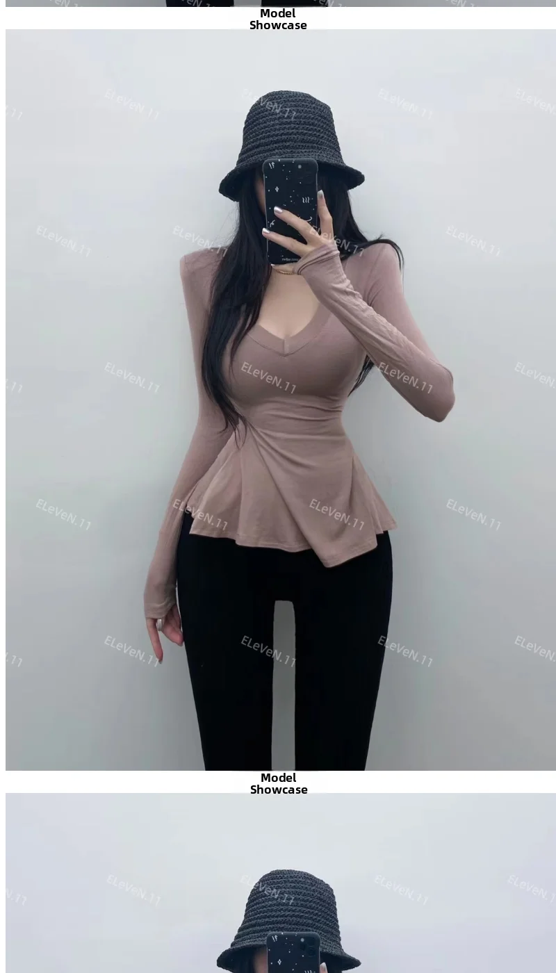 Pure Desire Sexy Long Sve T-irt Women's V-Ne Waist-Cinched Slim Fit Top for Autumn Faionable And Slimming