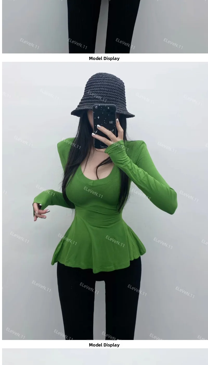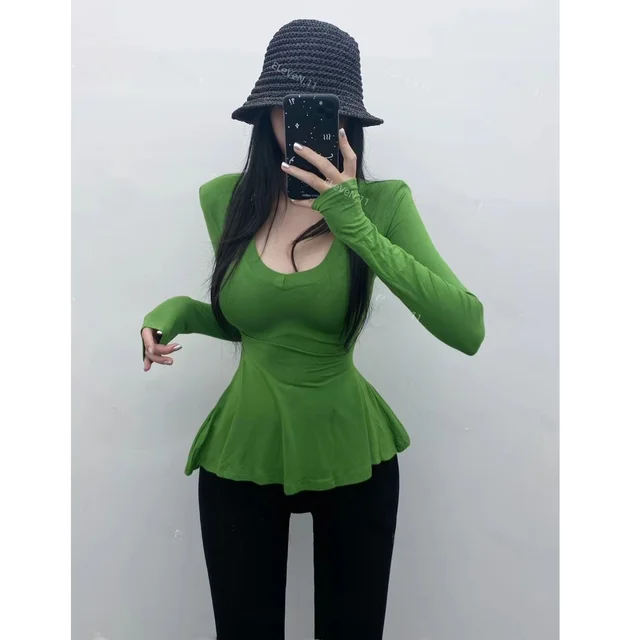 Pure Desire Sexy Long Sve T-irt Women’s V-Ne Waist-Cinched Slim Fit Top for Autumn Faionable And