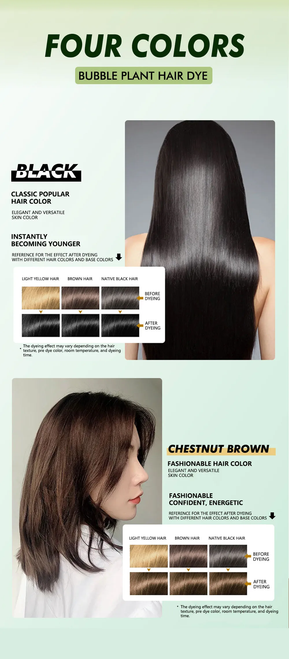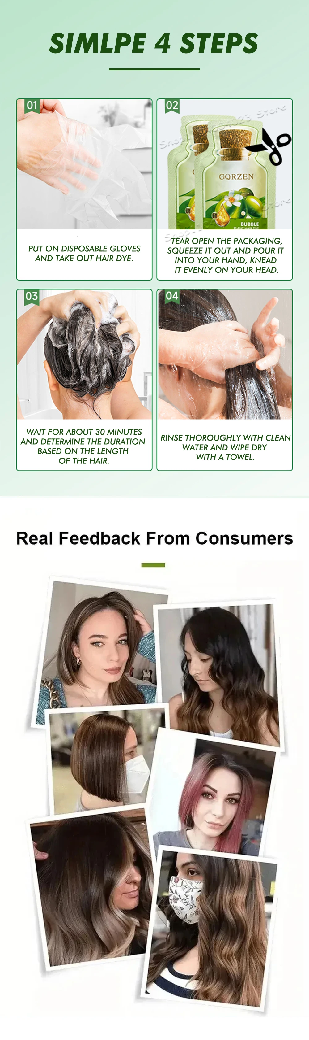 ●1. Plant bubble hair dye, suitable for all types of hair, including thick, fine, and normal density hair, as well as straight or curly hair texture. Effectively covers white hair and is no longer affected by it. Nourishing and repairing hair.