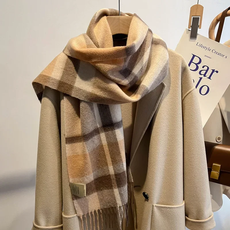 Pure Wool Plaid Scarf Unisex Autumn Winter Warmth Fashionable Cashmere Turtleneck Scarf for Men And Women
