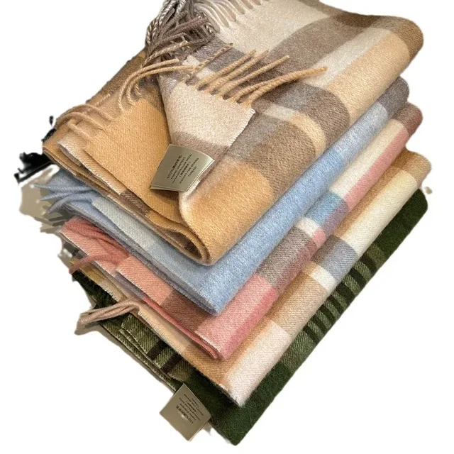 Pure Wool Plaid Scarf Unisex Autumn Winter Warmth Fashionable Cashmere Turtleneck Scarf for Men And Women in Various Colors