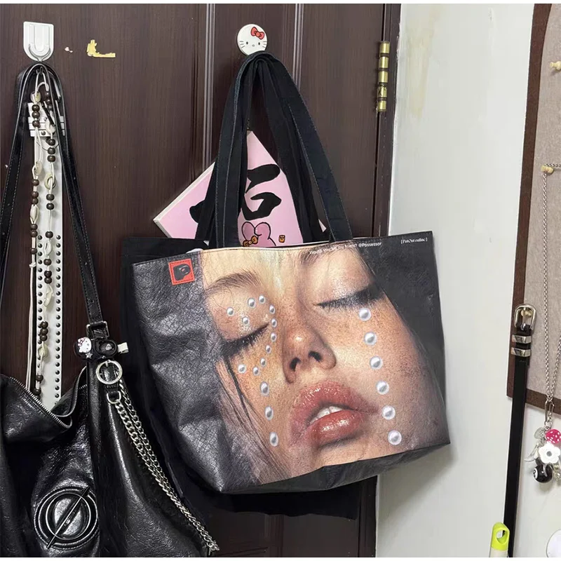 New Japanese-Style Embroidered Shopping Bag Rabbit Flower Women's Shoulder Bag Large Capacity Tote Bag Lightweight Foldable Storage Suitable for Commuting Travel Leisure Holiday Party Ethnic Style