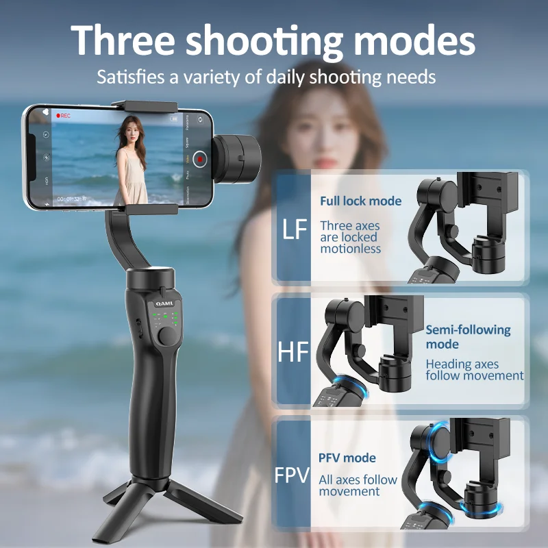 • 3-Axis Gimbal :The QAML F8 Handheld Gimbal features a 3-Axis design, ensuring smooth and stable video recording, reducing camera shake, and enhancing the quality of your videos.
