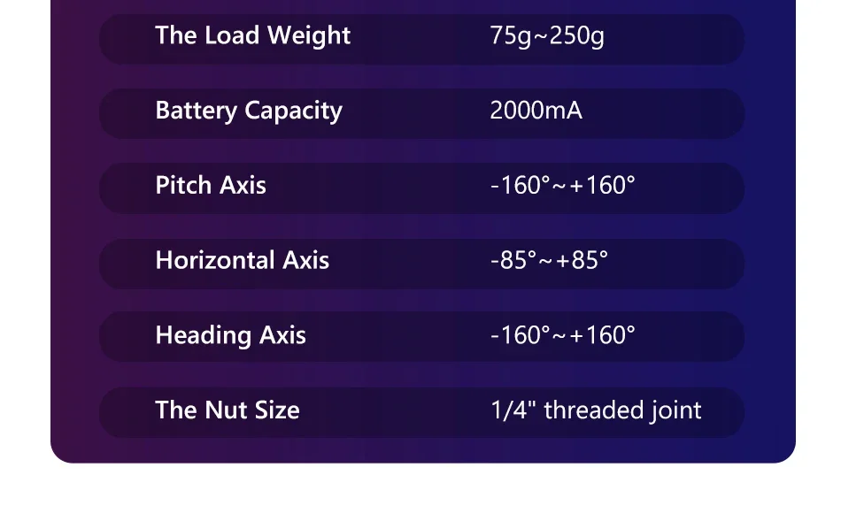 NOTE: This gimbal needs to adjust the balance when you use it for the first time. Please contact us if you don’t know how to adjust the balance.