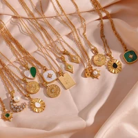 18K Gold Plated Stainless Steel Romantic Sweet Casting Sakura Necklace Cherry Blossoms Flower Coin Necklaces For Woman