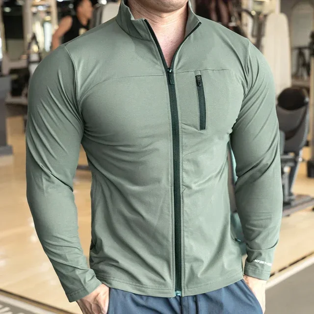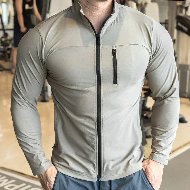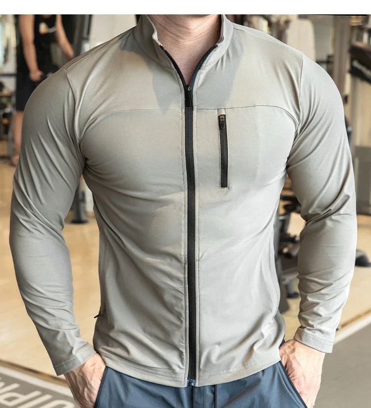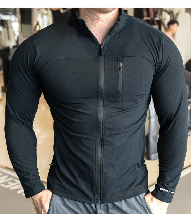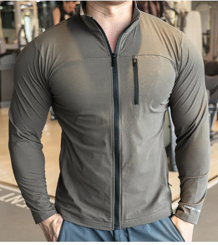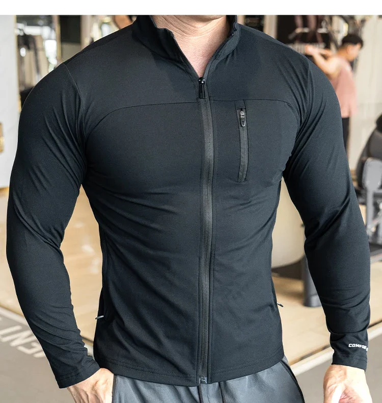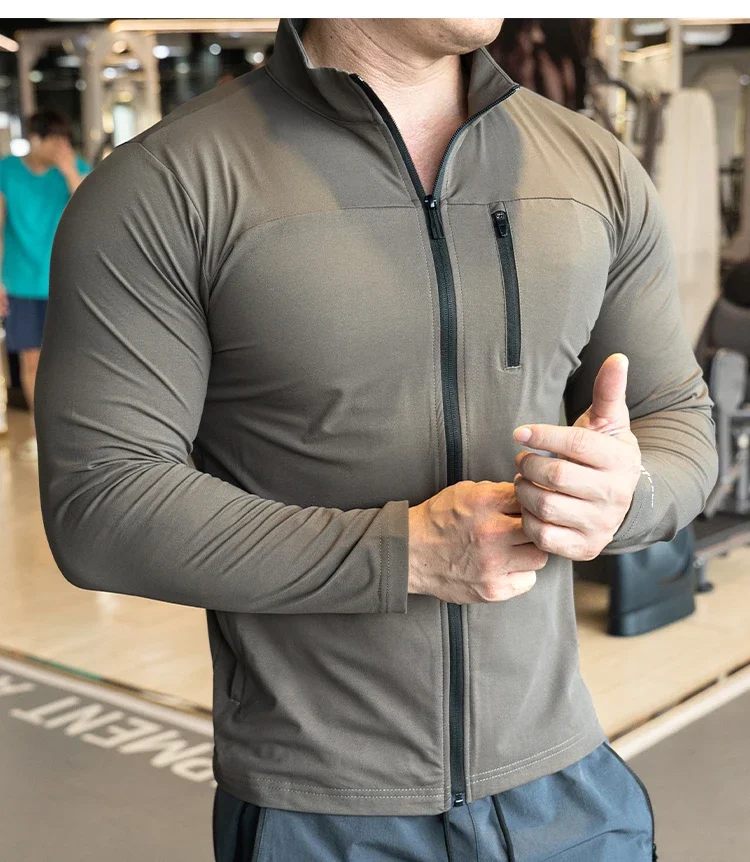 Mens Gym Fitness Shirts Tops High Quality Running Sport Jacket Outdoor Workout Sunscreen Clothing Training Sweatshirt Zipped