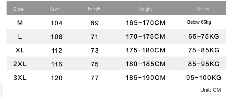 | 3XL | 77cm | 120cm | 190-195cm | 95-100kg |