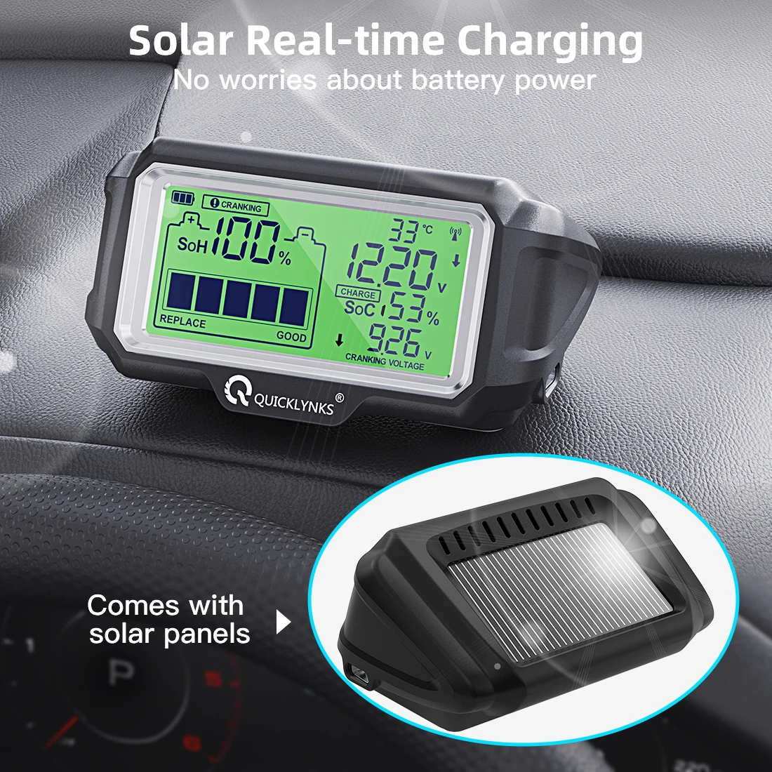 QUICKLYNKS BM5-D 12V Car Battery Tester LED 433MHz Monitor Head-Up Display SOH SOC Charging Battery Analyzer