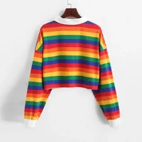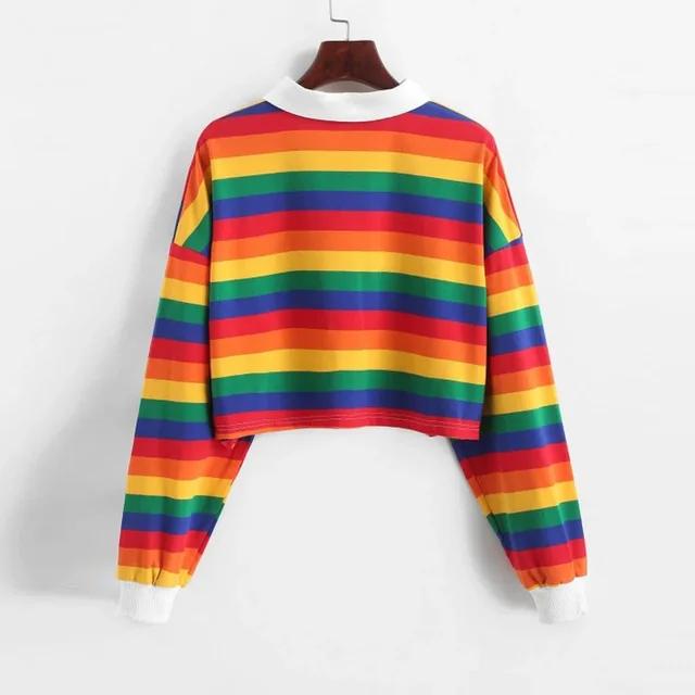 • Rainbow Striped Design : The T-shirt features a vibrant rainbow striped design, adding a pop of color to any outfit and making it a standout piece.