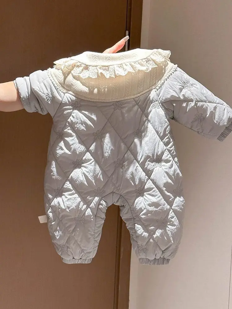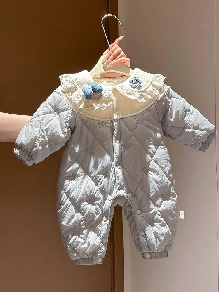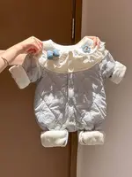 Autumn baby Korean color contrast long sleeve jumpsuit, male and female baby autumn basic simple and comfortable jumpsuit hat, v