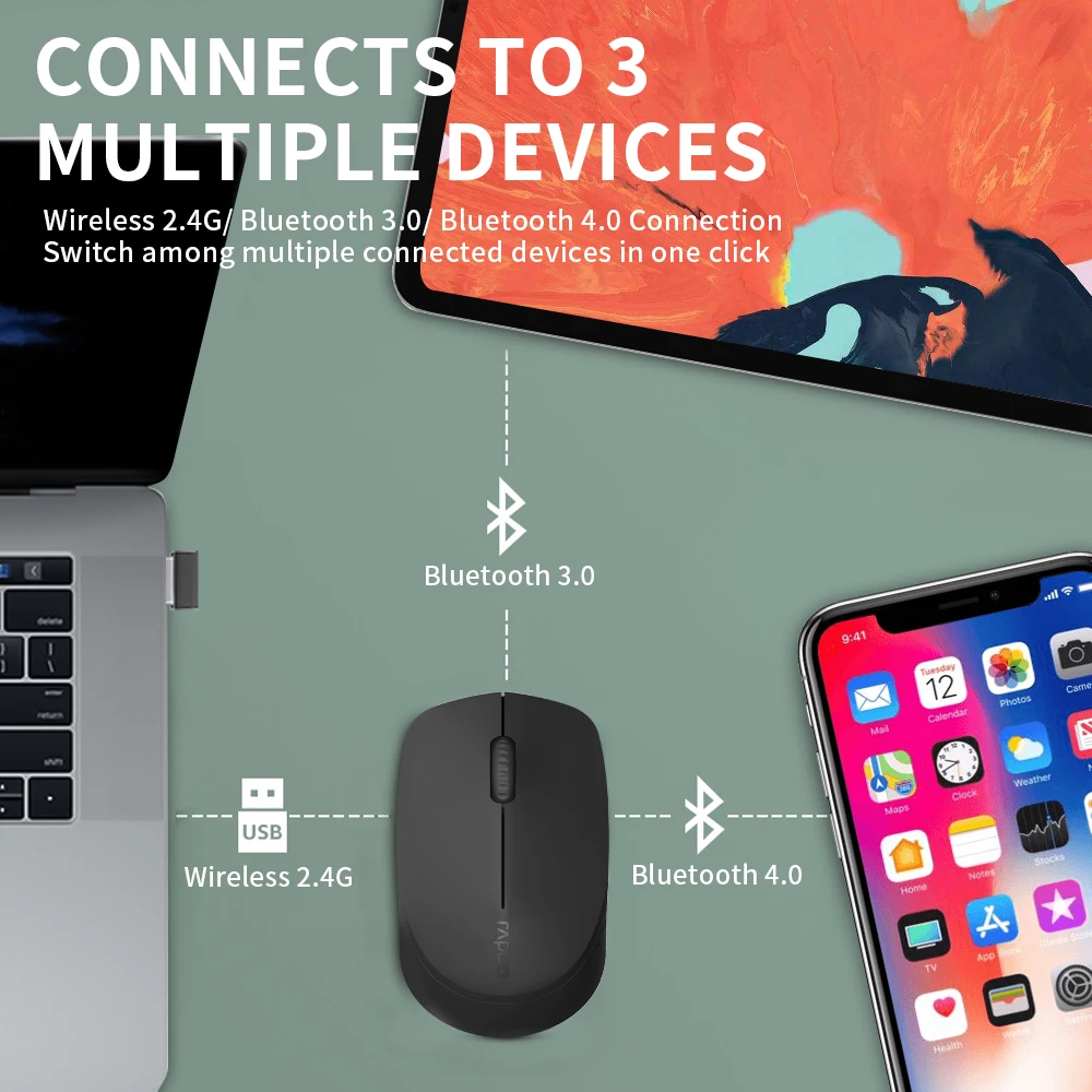 Rapoo M100G Multi-Device Bluetooth Wireless Mouse 1300 DPI Silent 3 Buttons Mute Mice Quiet 2.4G Mouse for Laptop Tablet PC Mac