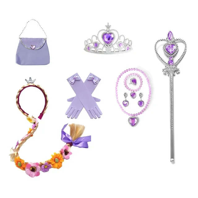 Rapunzel Princess Accessories Gloves Wand Crown Jewelry Set Kid Wig Necklace Braid for Princess Dress