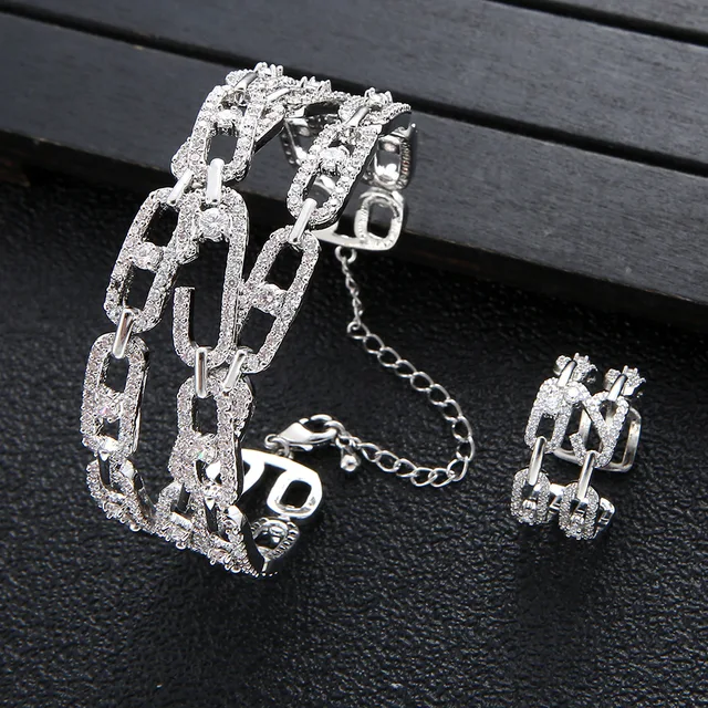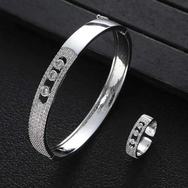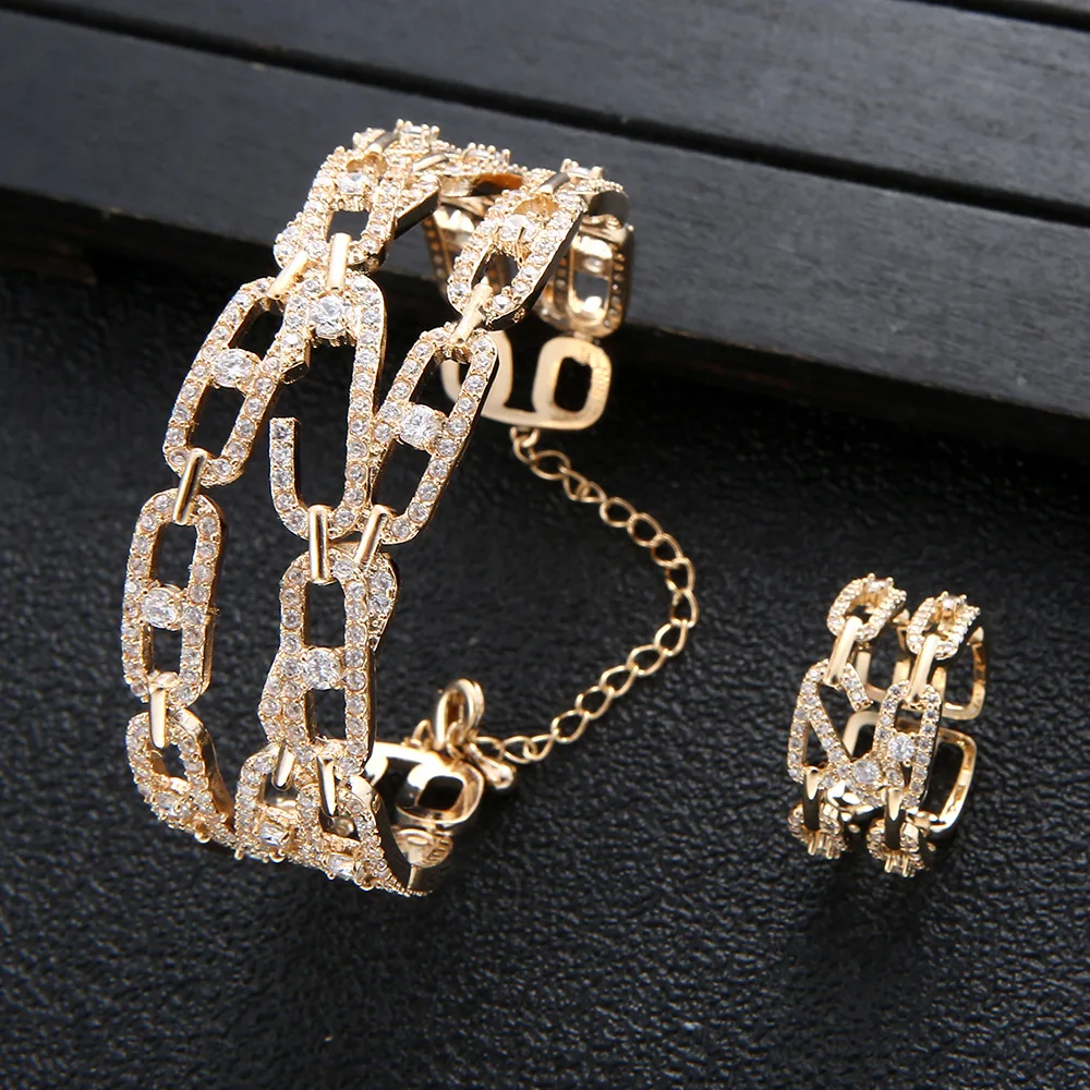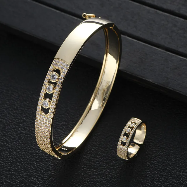 Real 18k Gold plating bangle Rings set for Women Luxury Full Zircon Lucky beads Fine Jewelry Wedding Anniversary Party Gift