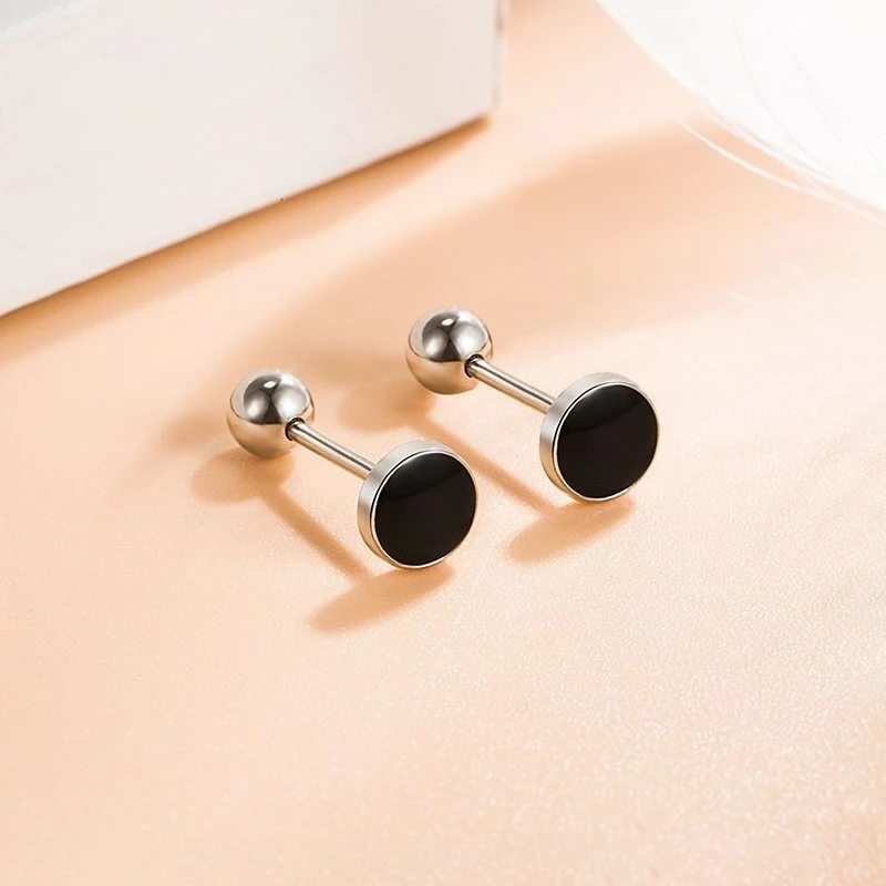 Sauvoo 1 Pair Punk Black Stainless Steel Hoop Piercing Round Neutral Earring for Women Men Fashion Jewelry Gouden Oorringen