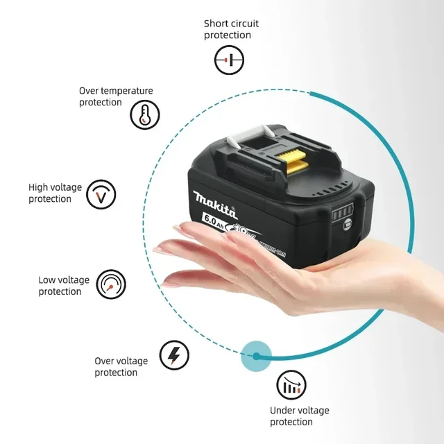 6.Compared with 3.0Ah battery, BL1860b can provide up to 2.3 times longer battery life per charge.