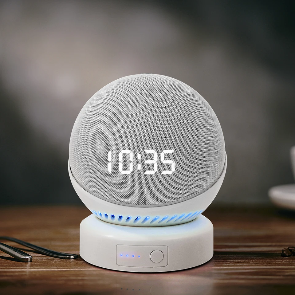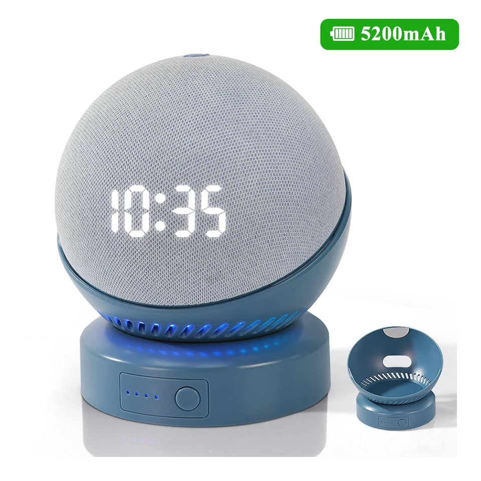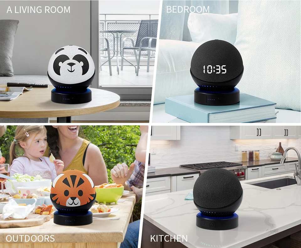 The half-opening shape of battery base is specially designed for Echo dot 4th/5th, not only keep the speaker in place, but also make sure that the sound won’t be blockage or interference.