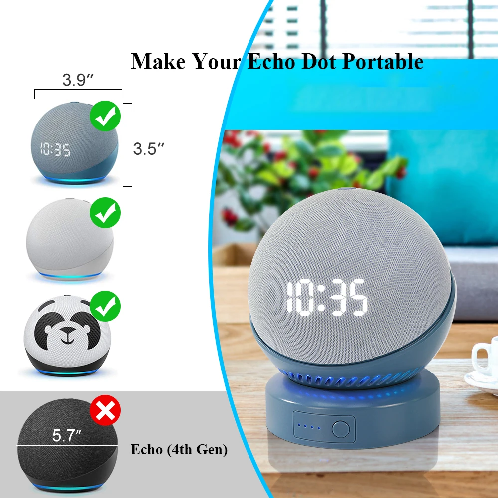 This battery base is special designed for Echo Dot, compatible with both all-new Echo dot 5th and Echo dot 4th.
