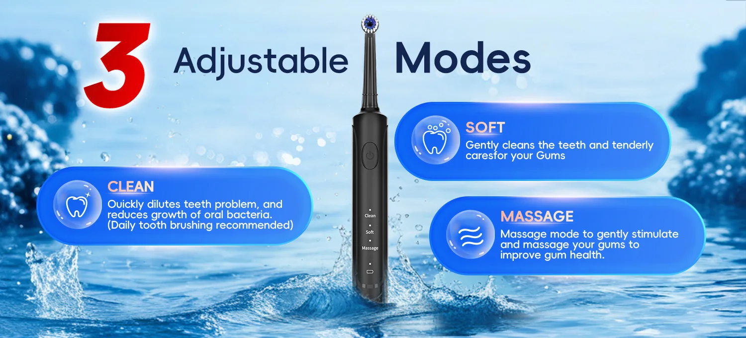 【3 Modes for Various Oral Care Needs】4 high-performance modes are designed to meet all your oral care needs and help maintain a healthy mouth. Whitening, Clean, Soft, Massage.100% teeth stain removing and teeth problem dislodging on teeth. Clean mode goes deep into the inter dental, cleans the dirt hidden in the periodontal. While massage mode offers a gentle massage of gums