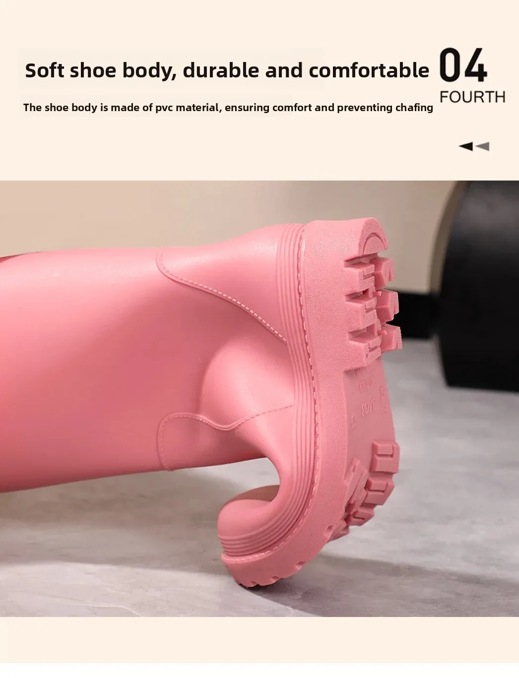 • Waterproof PVC Material : Crafted from durable PVC, these rain boots offer superior waterproofing to keep your feet dry in wet conditions.