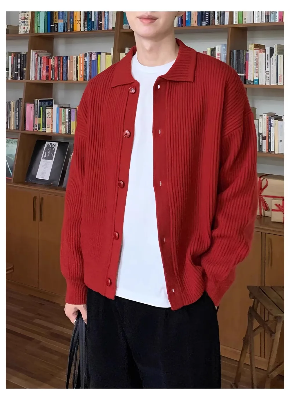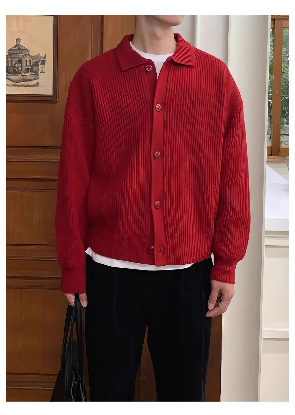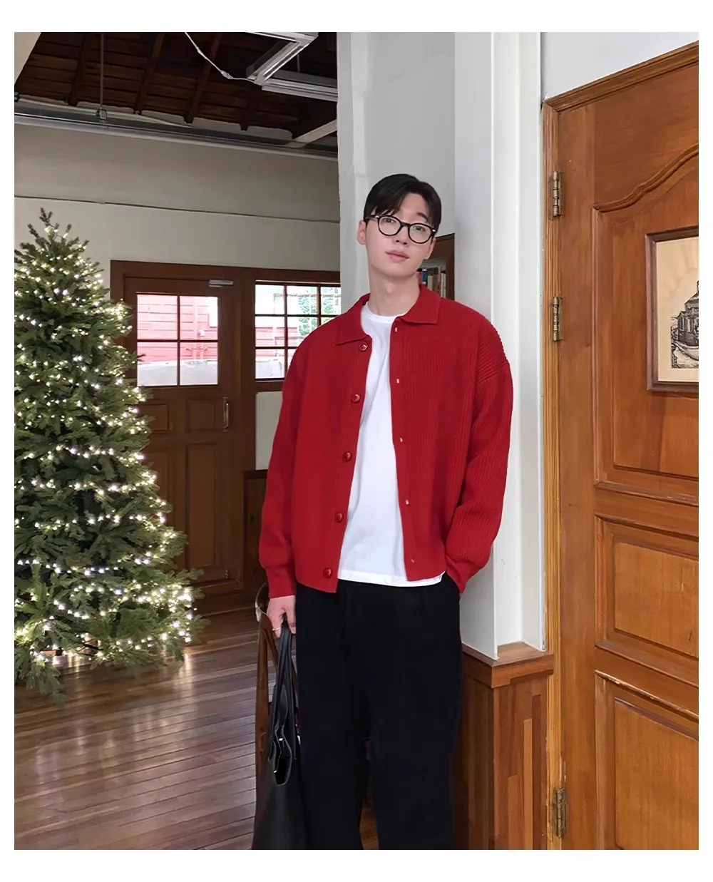 The sweater features a vibrant red color, perfect for adding a pop of color to any outfit during the autumn and winter seasons.