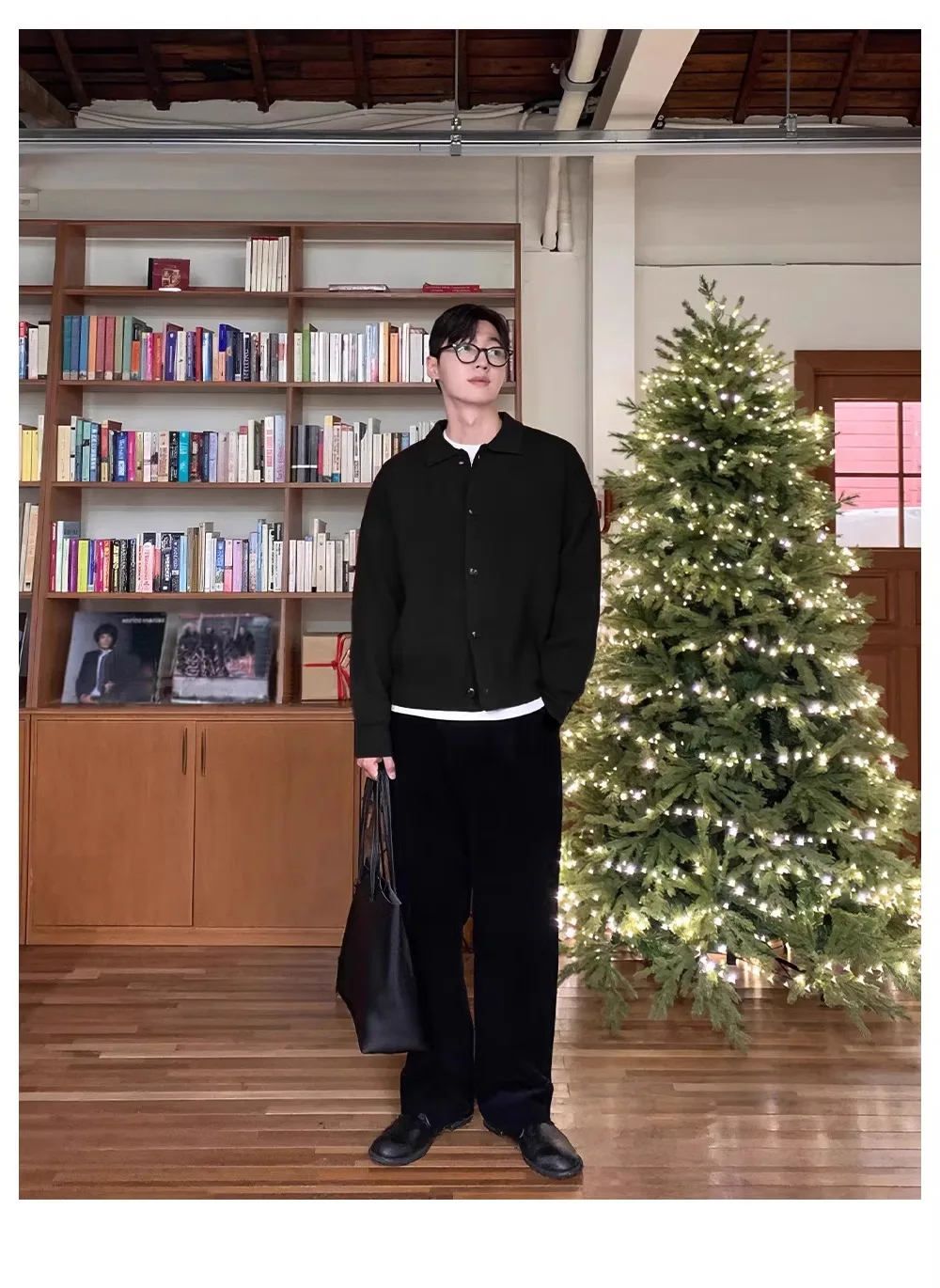 The turn-down collar adds a touch of sophistication to the casual knitwear, making it suitable for both daily wear and more formal occasions.