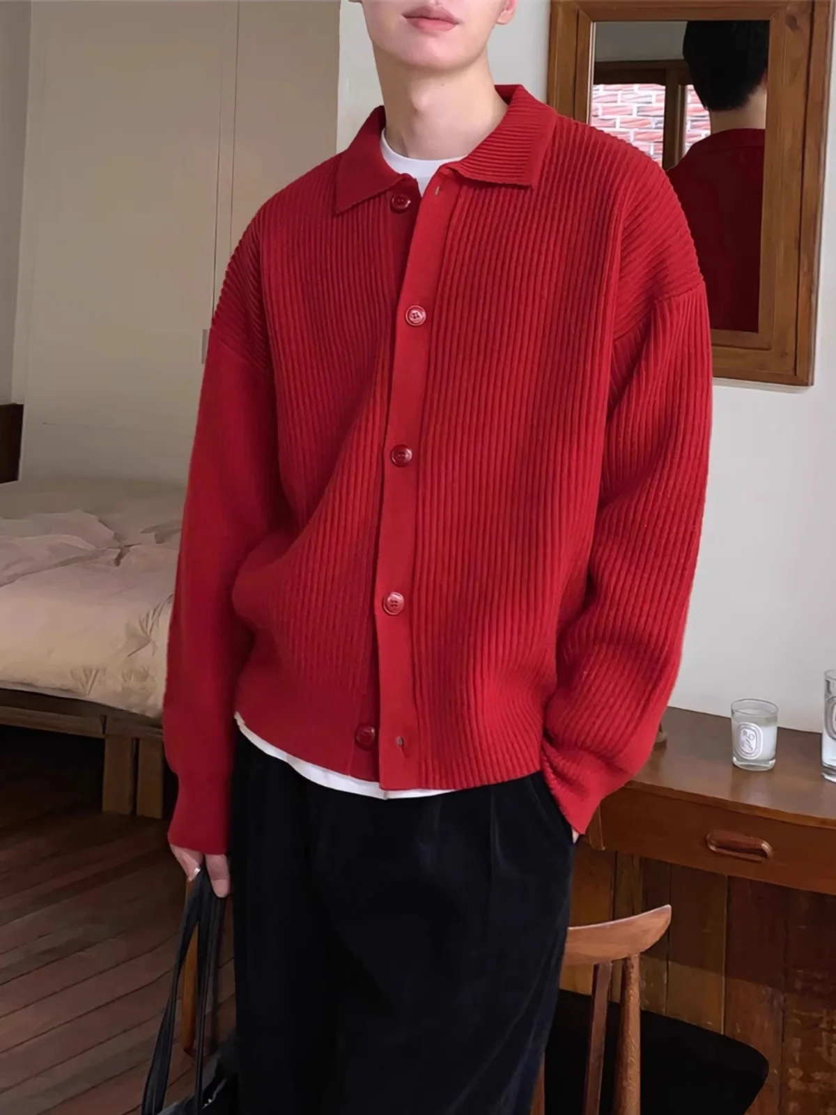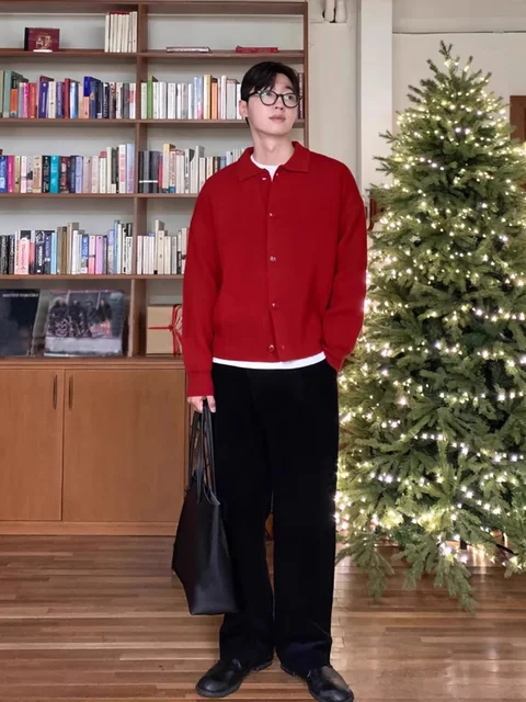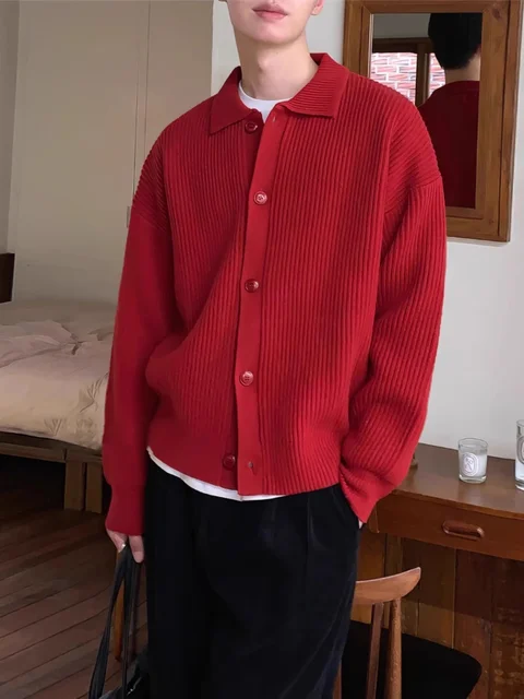 The sweater features a vibrant red color, perfect for adding a pop of color to any outfit during the autumn and winter seasons.