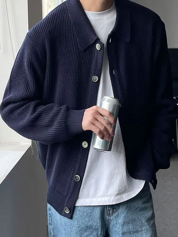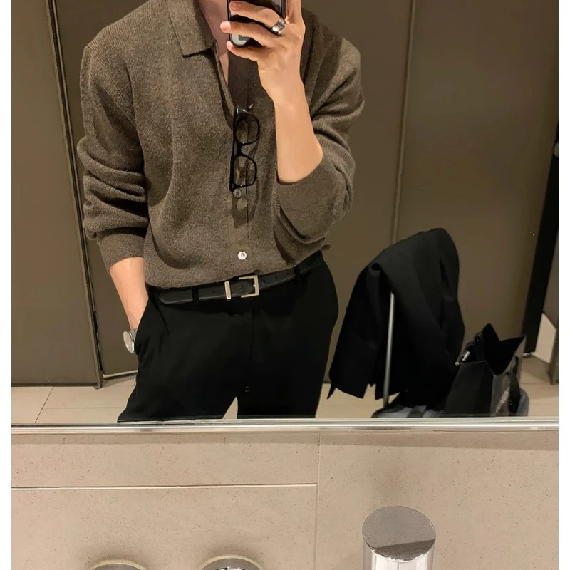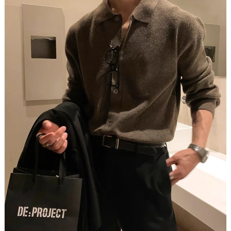 Red Knitted Sweater Carrot Sle Men’s Spring Autumn Korean Sle Dongdaemun 2025 Turn-down Collar