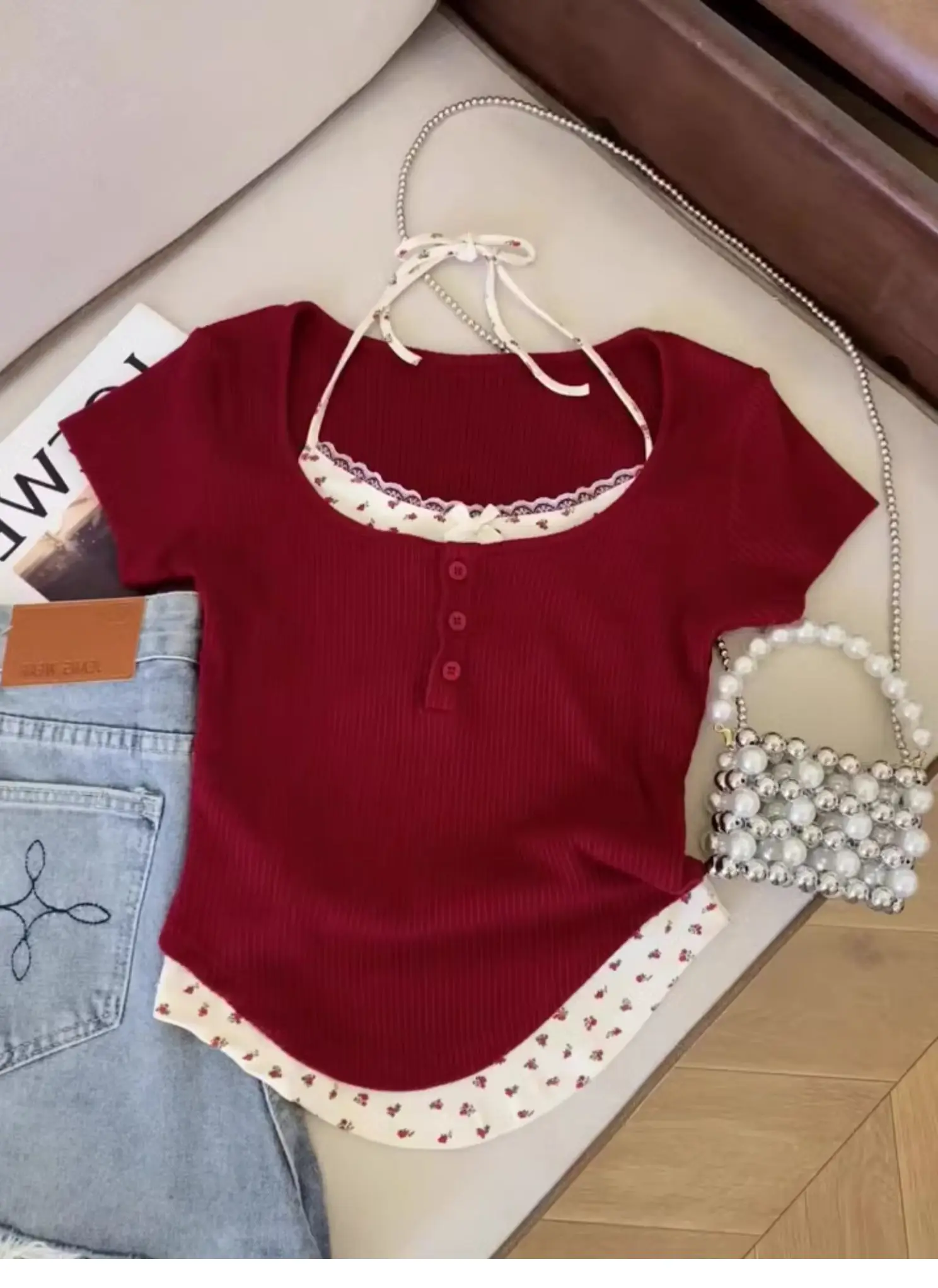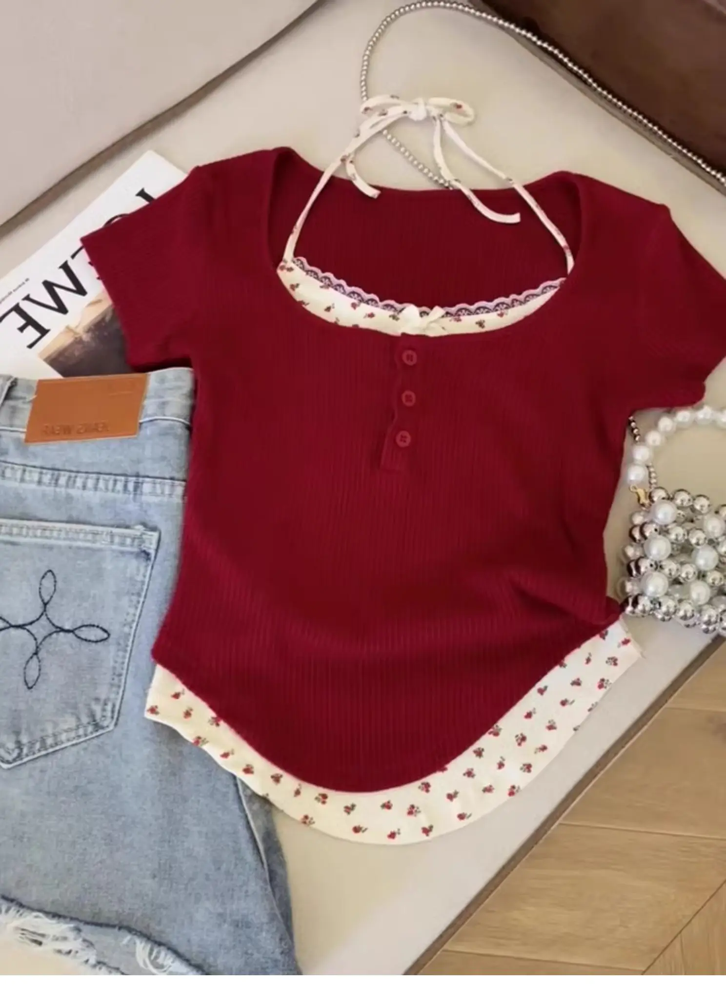 Featuring a playful floral print and a chic round neck, it’s ideal for various summer outfits.