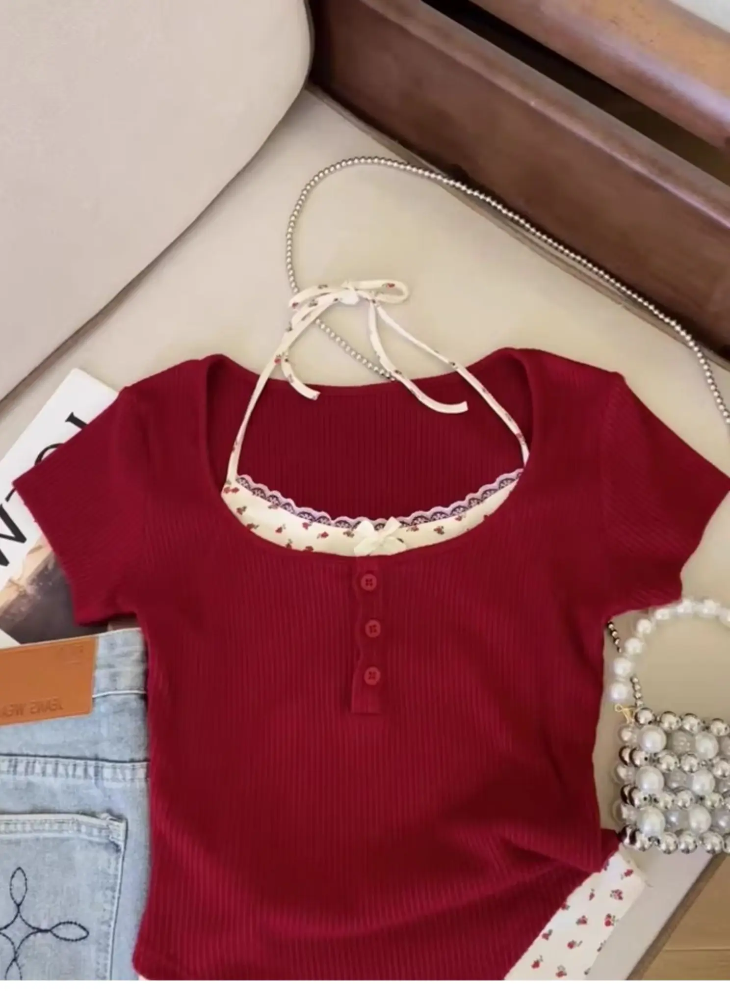 Embrace the trendy BM (Brixton Mod) style with this sweet and spicy lace-topped tee.