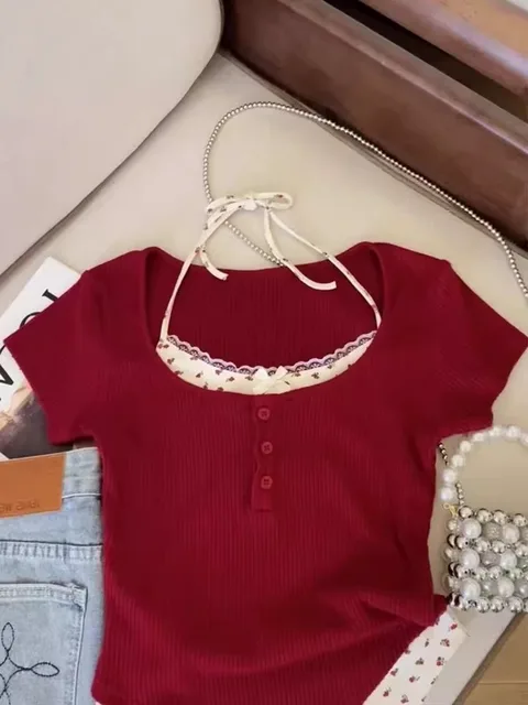 Embrace the trendy BM (Brixton Mod) style with this sweet and spicy lace-topped tee.
