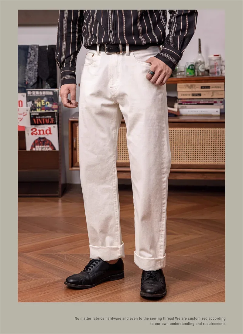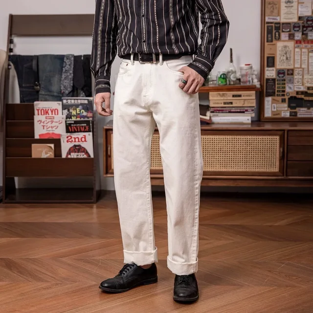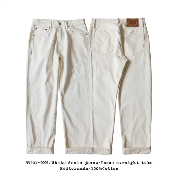 Red Tornado 55501 White Relaxed Straight Men’s Jeans Rugged Style 14oz Selvedge Denim Pants