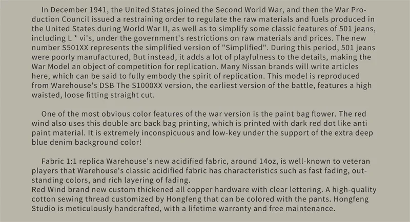 – Based on Warehouse S100XX ‘Dead Stock Blue’ Jeans (WWII Model)