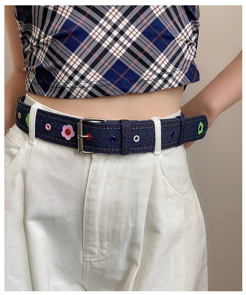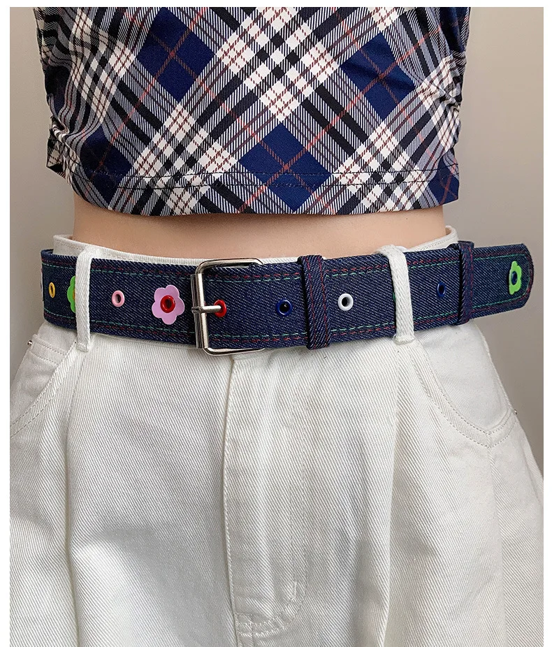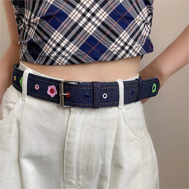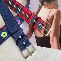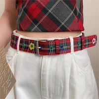Red Y2k Girl Belt Fashion Personality Blue Plaid Design Pin Buckle Girdle Hip-hop Trend Cloth Waistband for Women
