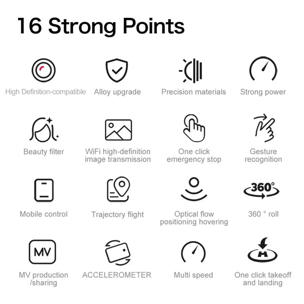 Enhanced Flight Stability: Features altitude hold mode, optical flow positioning, and stable flight dynamics. Headless mode simplifies operation by eliminating the need to adjust the drone’s orientation before takeoff.