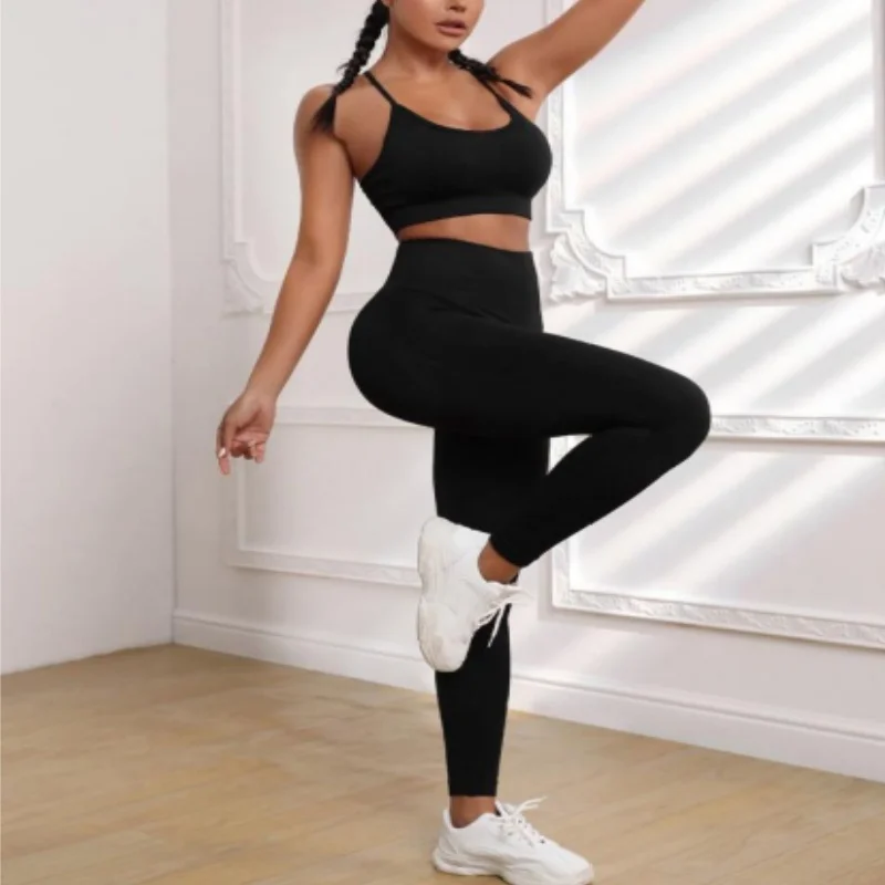 Removable-Padded Backless Crop Top And High-Waisted Yoga Pants Running Set Peach Design Fitness Outfit