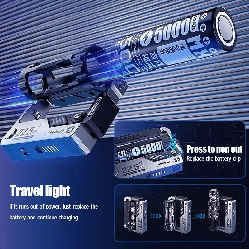 Replaceable Battery Pack 20000mAh 22.5W Fast Charging External Battery Two-way Quick Charge for IPhone Samsung Xiaomi