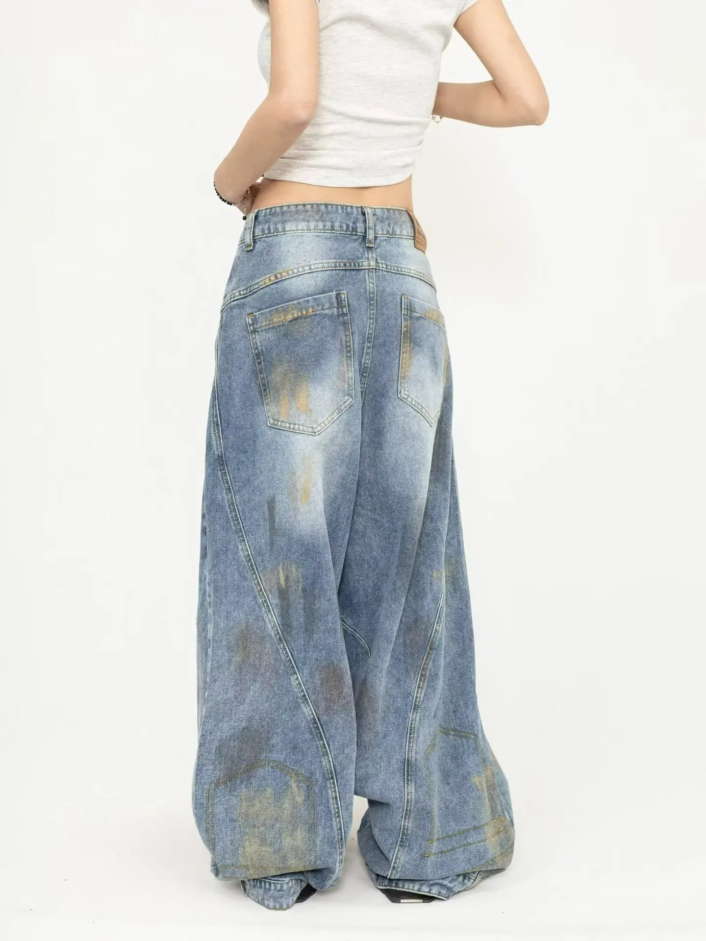 Featuring a unique retro graffiti design, these jeans add a touch of streetwear flair to any outfit.