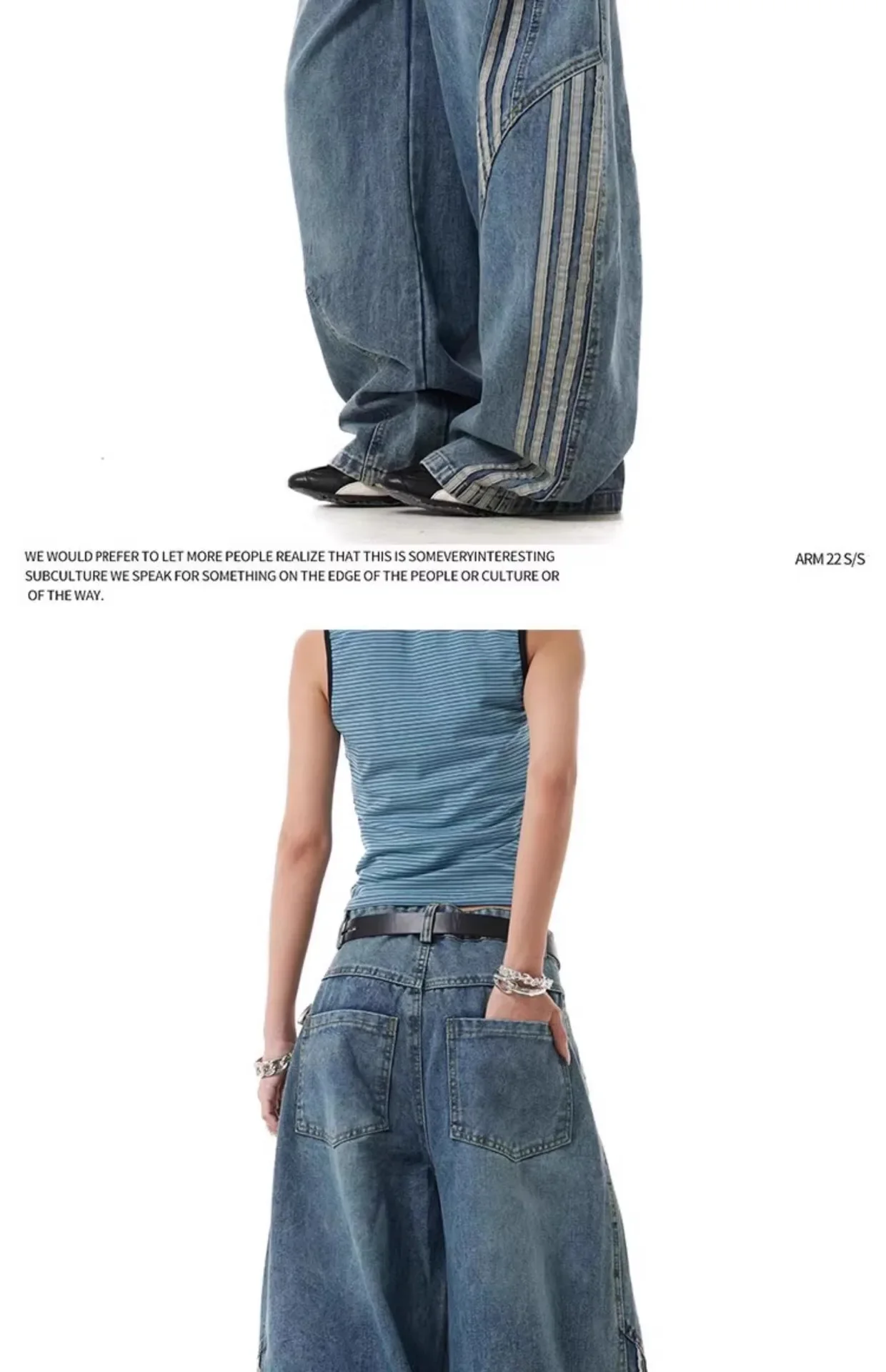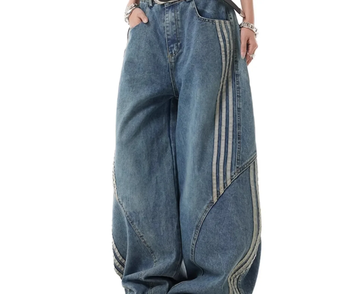• Three Bars Striped Stitching : The three bars striped stitching adds a stylish detail, enhancing the overall aesthetic of these jeans.