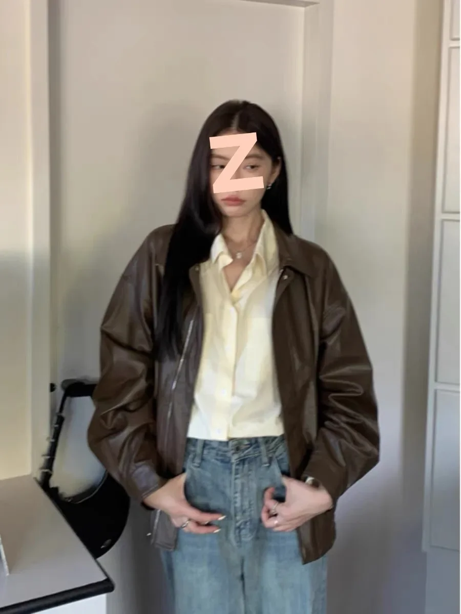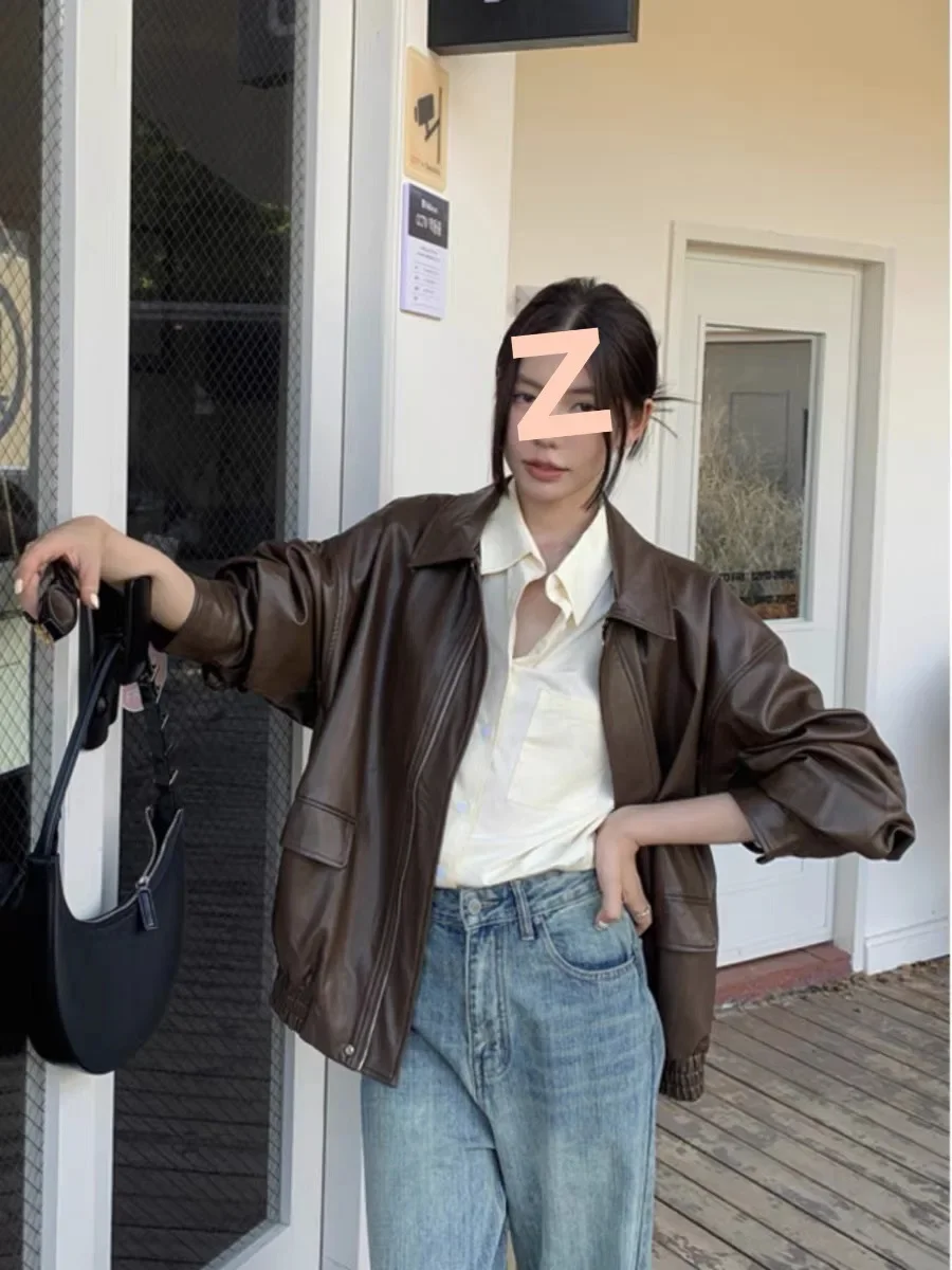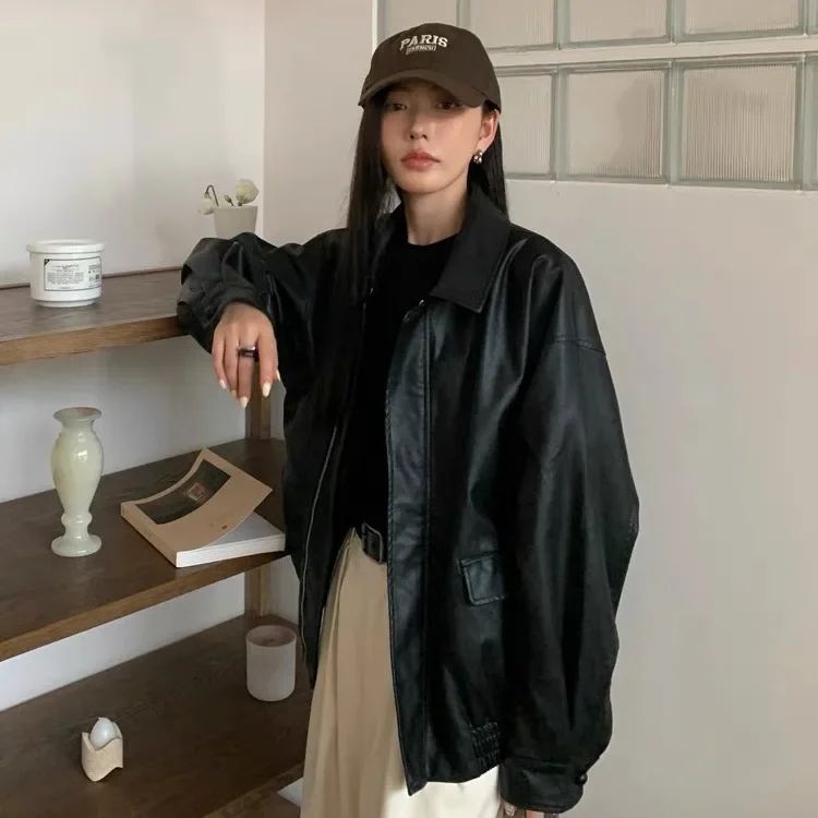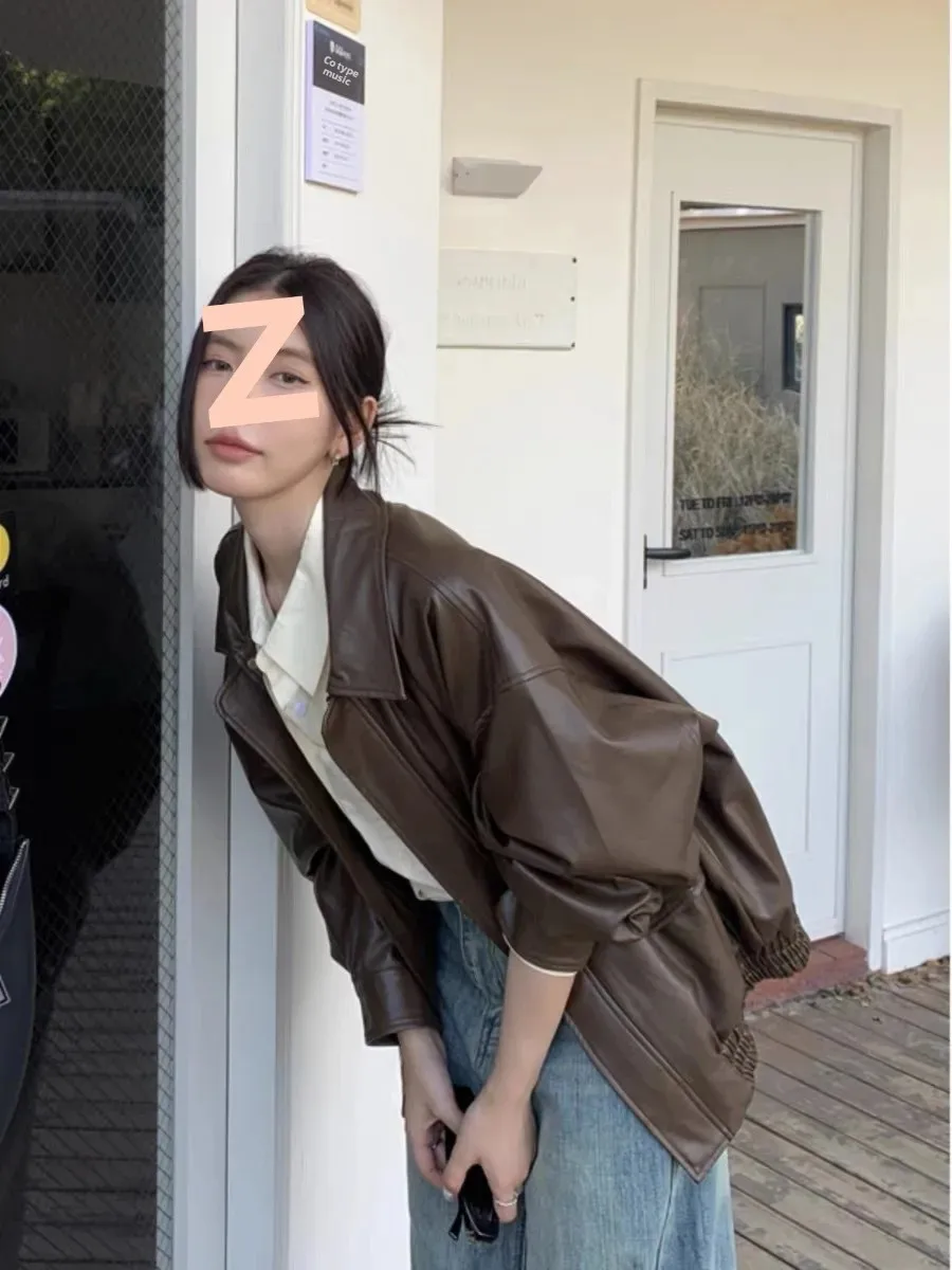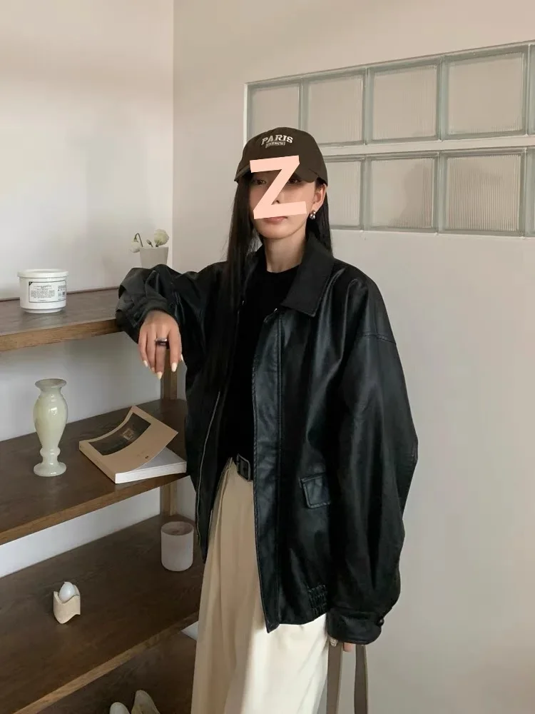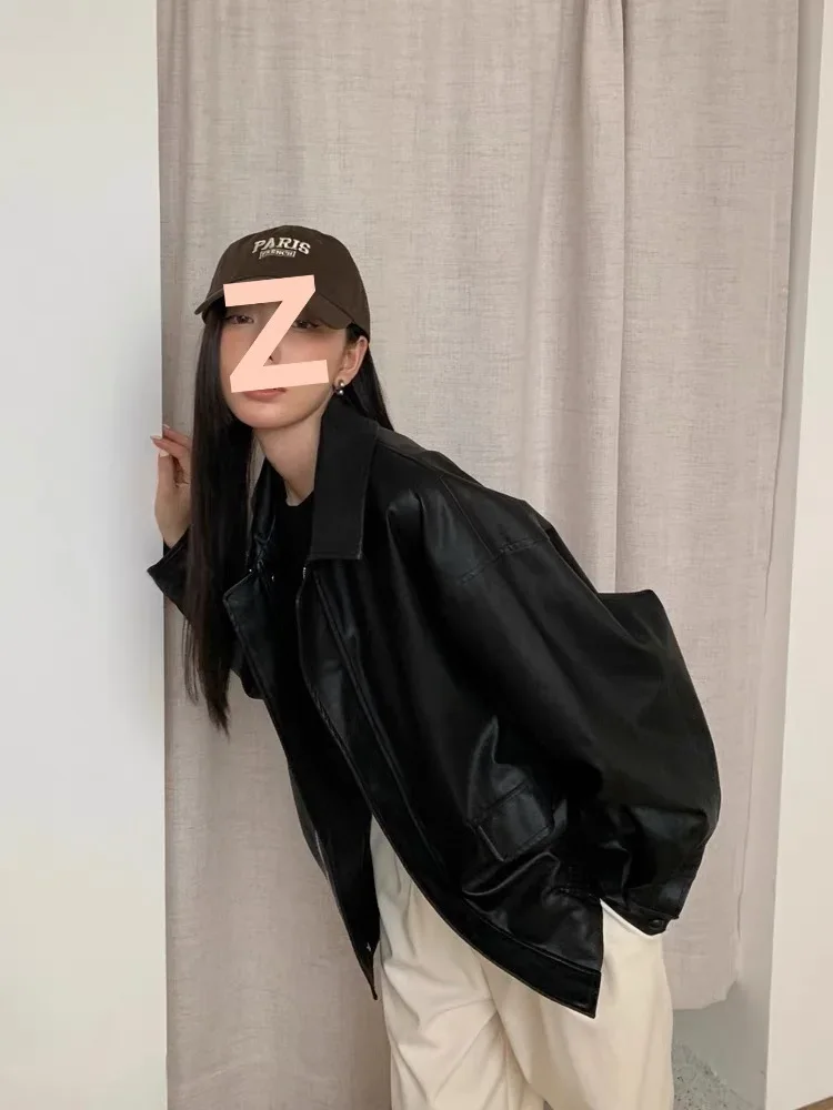 Retro American Motorcycle Leather Jacket Women’s Commute Trendy Top Coat Spring Autumn New Style